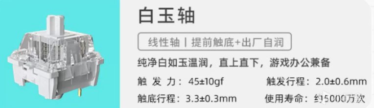 我這把的軸體是白玉軸,目前是沒有同配置搭載的這個軸體的選項,按需買其他軸體就行。