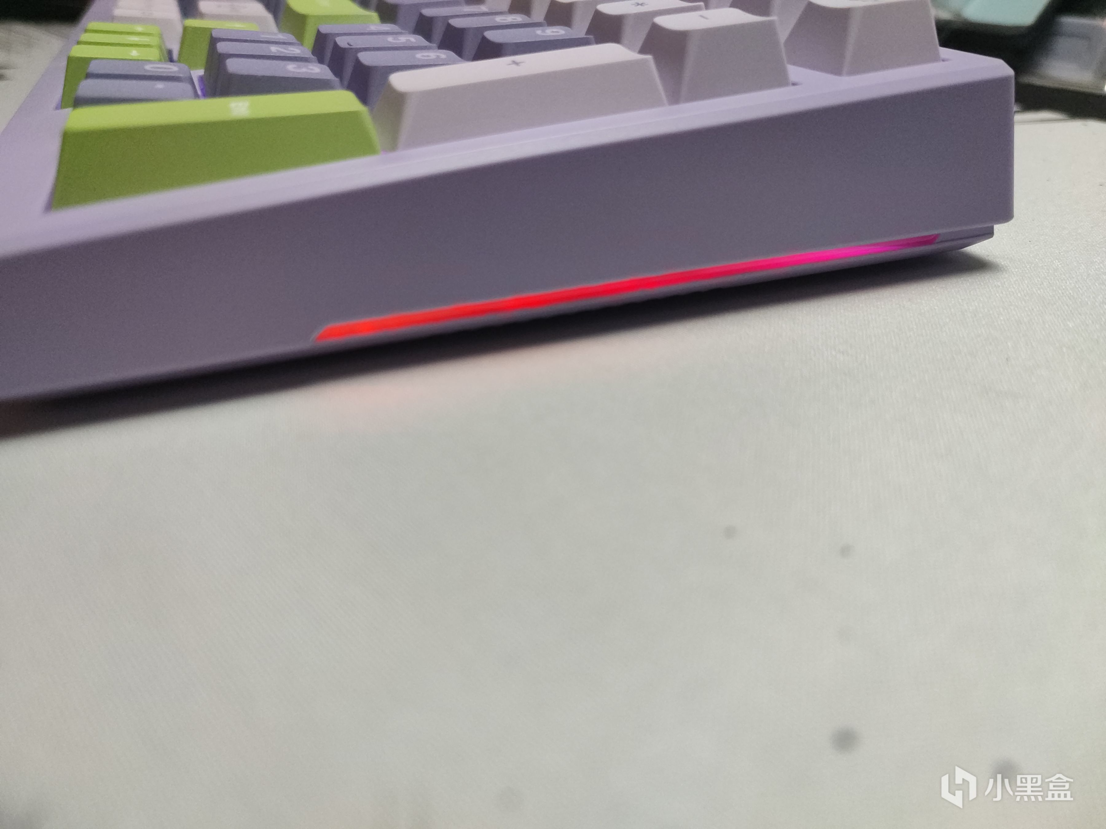 鍵盤左右兩側都有一條燈帶,看了一下整體的燈效流暢度還是比較不錯的,日常使用作爲氛圍燈很能添加氛圍。