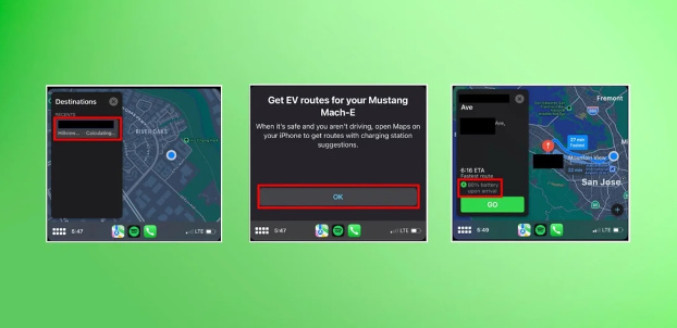 在连接了车辆 CarPlay 的 iPhone 上启用了该功能之后,用户可以创建新的导航路线,行程结束后可在手机上查看车辆的预估剩余续航。此外,苹果地图 App 还支持自动在沿途的电动汽车充电站添加停车点。