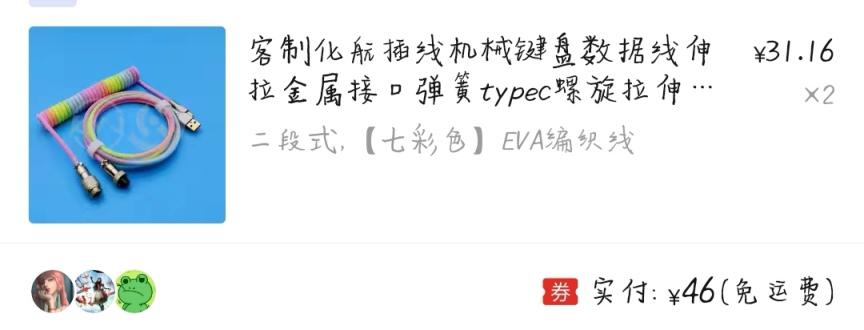 - 还有还有就是航插线,当时买的也不算贵,一根划到二十多,好看也挺实用