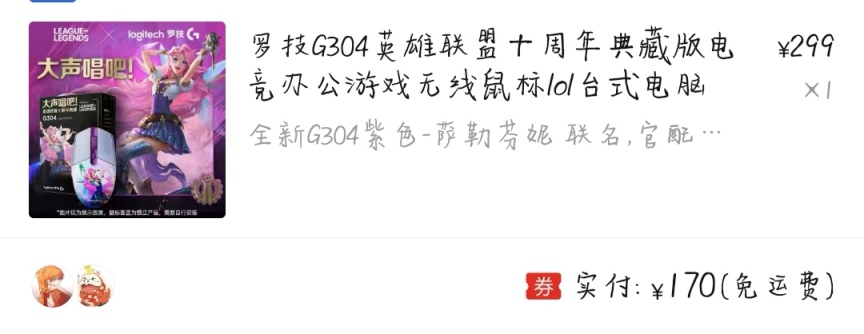 - 先看外设啊,鼠标是g304,170入的,主要我很喜欢这个颜色跟盖板,我当时买的时候现在的一众国产卷王还没出来,我算是大手,以前一直喜欢趴握,用了g304以后就变成抓握了,用习惯现在感觉也还好