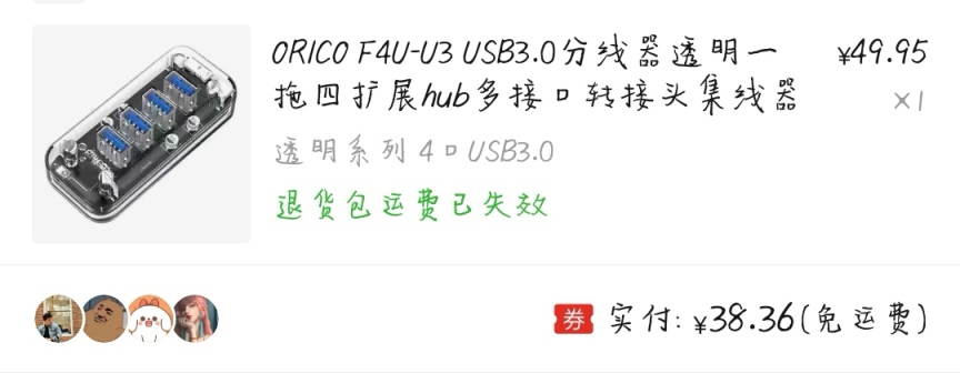- 最后是拓展坞,也算是比较刚需的东西,鼠标键盘加上手柄的话笔记本的三个usb接口多少有点不够用,拓展坞这个东西尽量还是买接口多点的比较好,我刚开始没想太多就买了个四个口的,现在感觉还是有点不够用,买的是透明的,感觉挺好看的,这玩意我不是很懂啊,但我发现搜分线器的话好像会便宜一点,用到现在感觉还不错