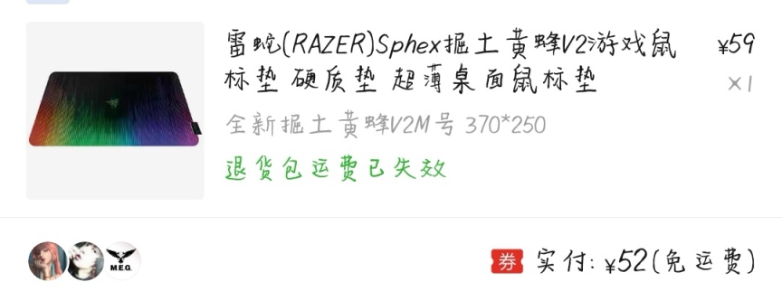 - 再有就是鼠标垫,这个东西xdm千万不要小瞧哦,一张好的鼠标垫真的能增加舒适度提高幸福感的,最开始我也不在意,用的是某音上抽到的不要钱的大桌垫,直到后来有一天我让我的室友帮我顶一下派派,他一用就说感觉我的鼠标垫好涩不好用,然后我试了一下他的垫子(他用的是玻璃垫),确实滑溜不少,但是玻璃垫冬天太冰手了,我也并不是特别喜欢玻璃垫的手感,但是别的好一点的垫子像虎符之类的动辄又要一两百,还不是很耐用,于是我将目光看向了树脂垫,买了一张雷蛇的掘土黄蜂v2(桌面空余不是很大,v3有点放不下)