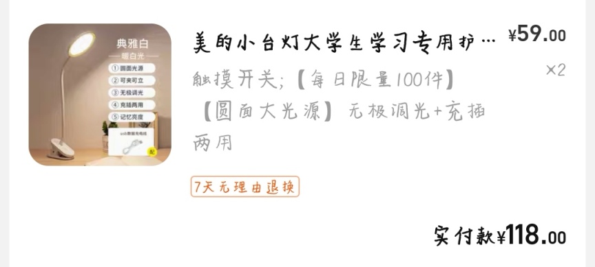 - 台灯,我的台灯是从小学用到现在的,质量不错,大一开学的时候就一并带到宿舍了,追求好一点的氛围感的话可以整个屏幕挂灯,但是前面也说了我并没有外接显示器的需求也就没有买了,除了桌面上的台灯之外,我还买了一个充电的台灯,晚上可以夹在床栏上当个夜灯用,平时白天也可以拿下来夹在书柜边上增加桌面的亮度,充一次电还挺耐用