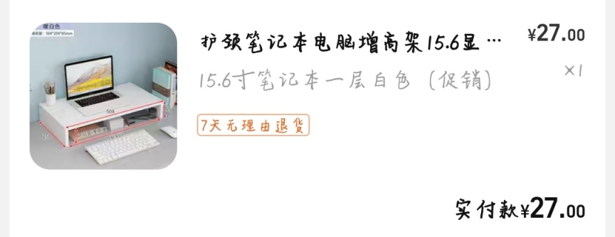 - 首先是增高架,可以增加桌面的空间利用率,上面放笔记本,下面可以收纳键盘啊,笔记本电源之类,我基本上不打算用外接显示器了所以呢增高架买的比较大,为了放得下我的笔记本