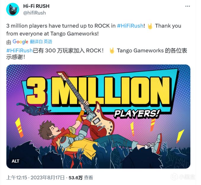 《完美音浪》开发商Tango Gameworks在前几日公布玩家超300 万。