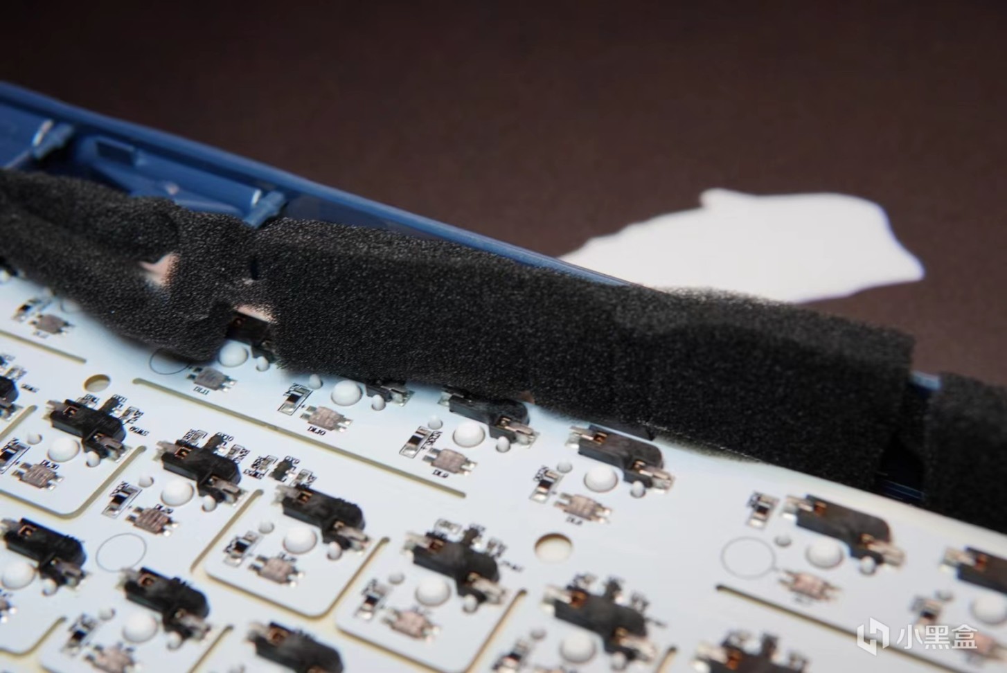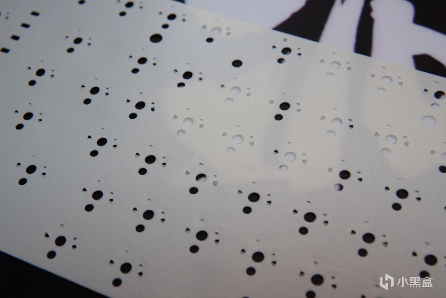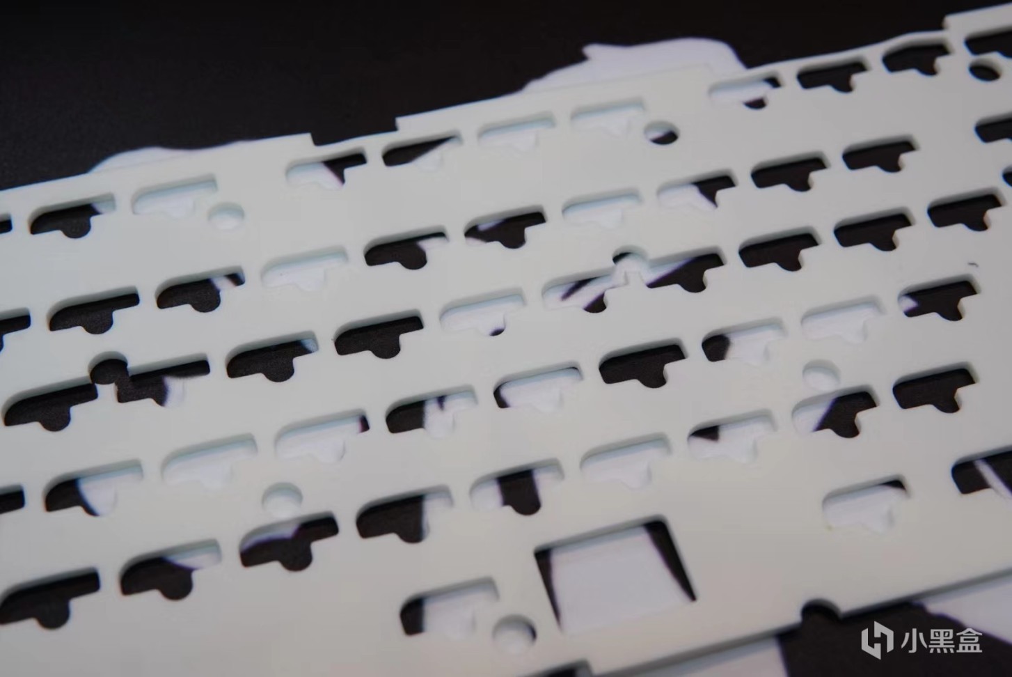 这个键盘同时给你增加了pet声优垫,顾名思义就是会让键盘的声音变得更好,但是通常情况下这个声优垫是不会进项开孔的处理,但是这个进行了开孔的处理,我有点搞不懂。