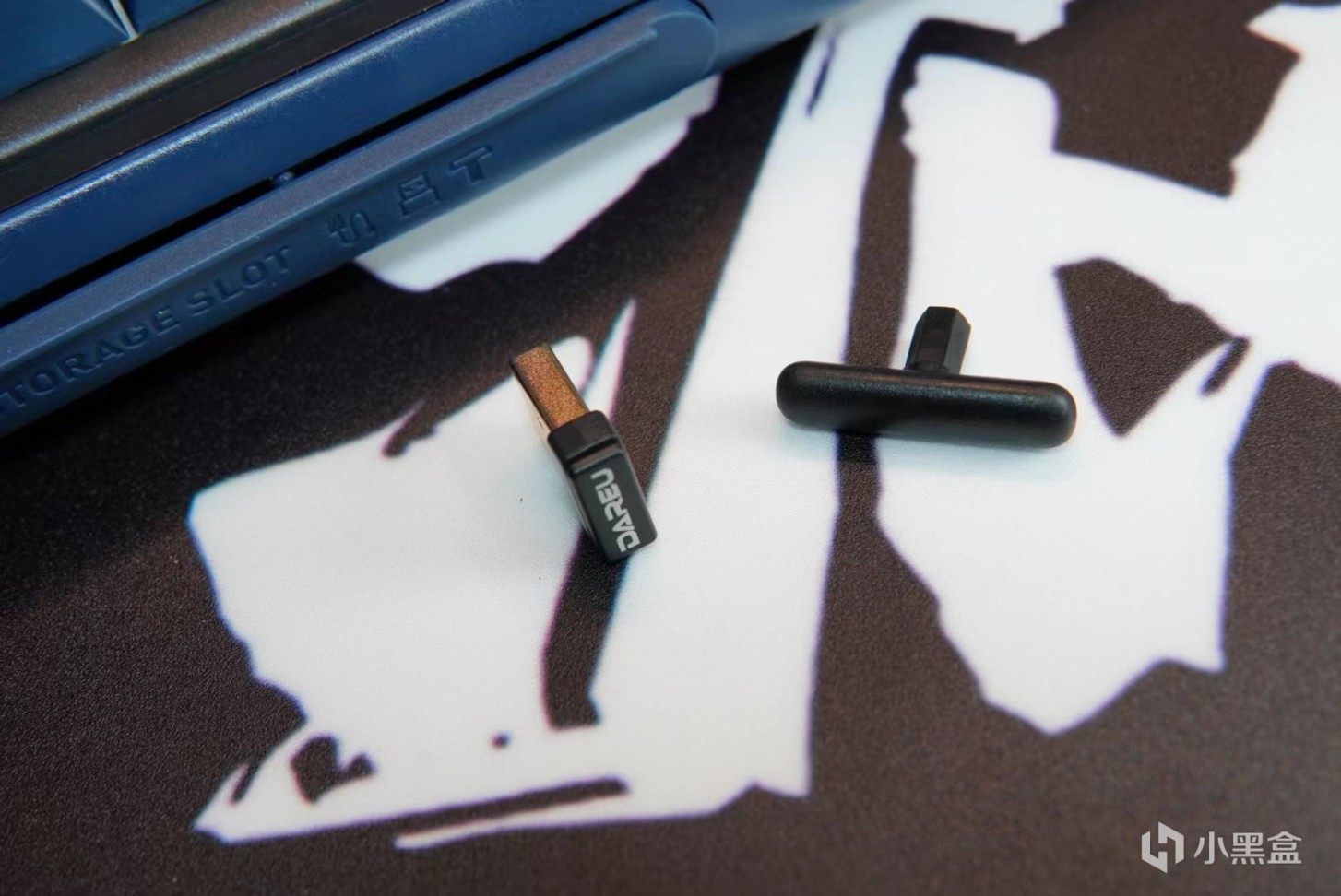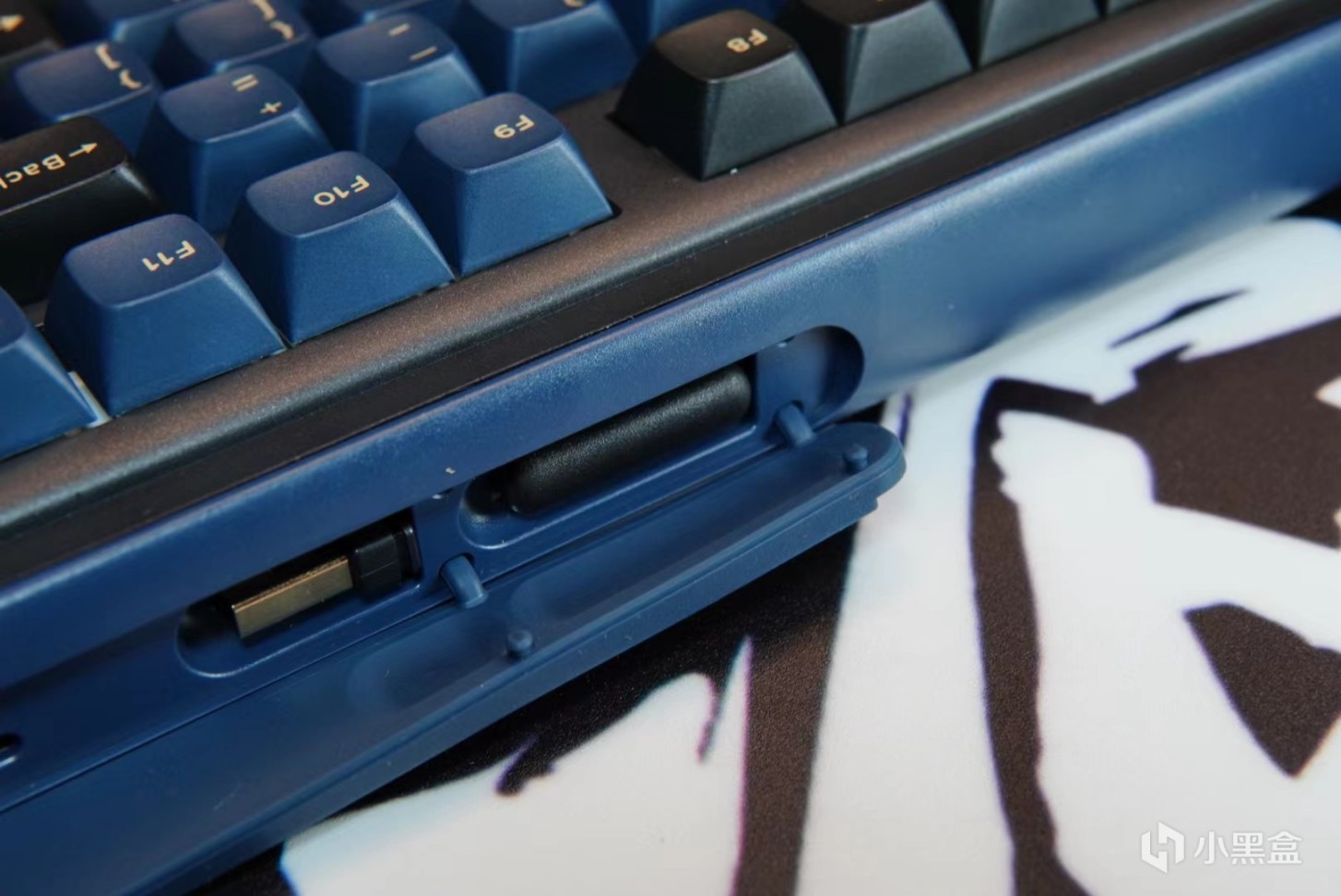 键盘的右上角这个有点意思,做了一个翻盖的设计,里面做了充电口,调节扳手,2.4g接收器。这个设计是可以的,但是也是很鸡肋的,我都不想说啥,看下面的图。