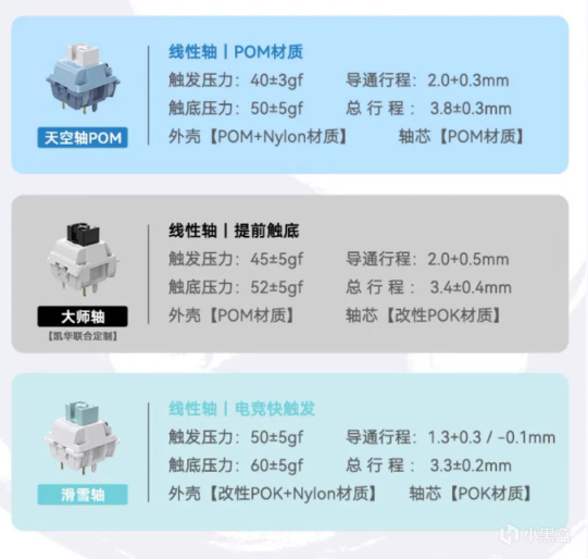 轴体这里有三种轴体可以选择,我这里强烈建议去选择大师轴,声音手感非常的好,凯华代工的一款轴体,属于是上乘的轴体了。