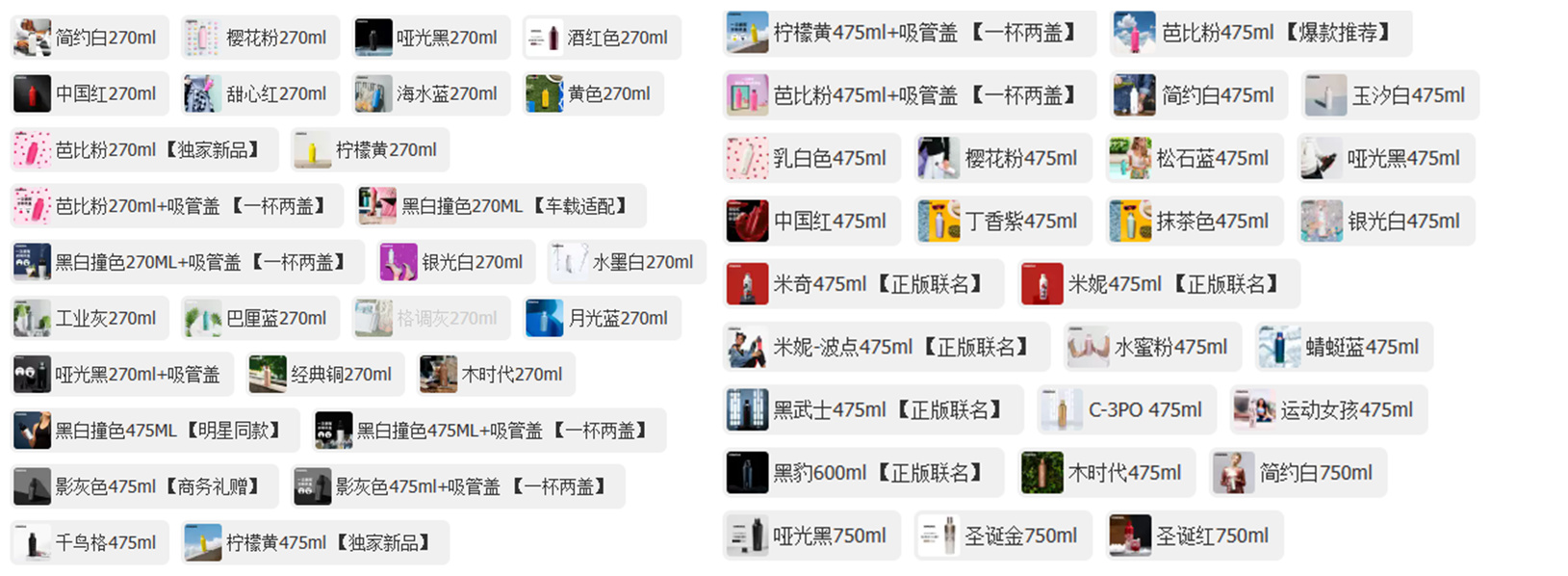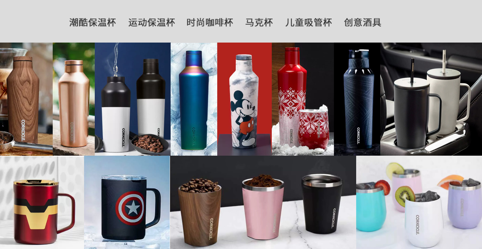 我比较推荐的是CORKCICLE(酷革)保温杯,也算是一个潮牌了。而且外观设计都非常不错。有多种不同容量,不同杯型的产品,保温保冷效果都很不错,表面处理效果也丰富多样,单色、定制色、IP联名都有,非常符合目前年轻群体的个性化的特点,如下图所示,有兴趣可以去官方店铺转悠一下。