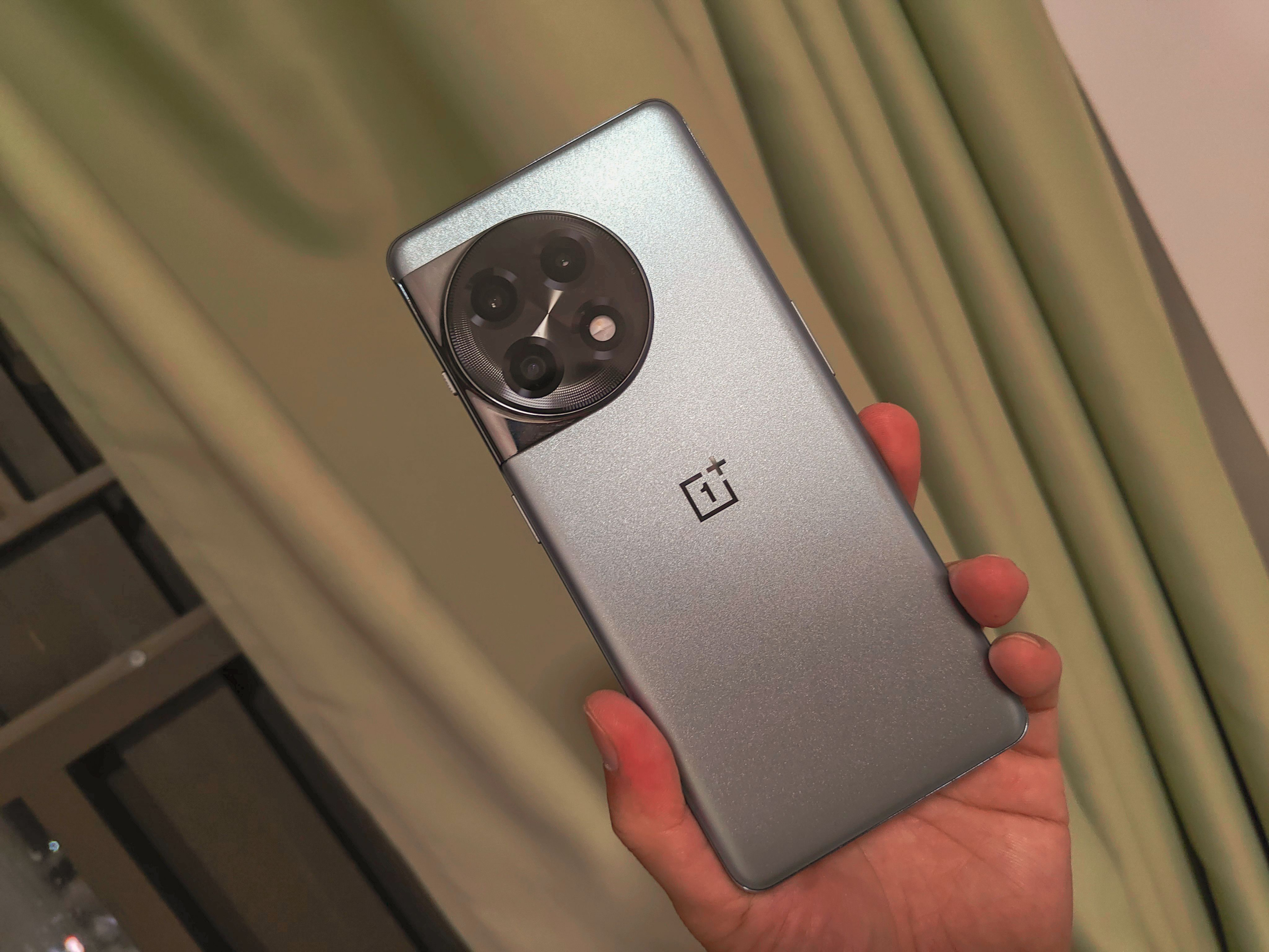 外观设计使用了跟一加11使用了相同的设计。三个摄像头和一个闪光灯的设计。背盖使用的是丝绸玻璃工艺,细腻哑光的质感,不仅手感舒服,而且视觉效果也很不错。摄像头使用了CD纹的装饰件,镜头部分看起来非常精致。