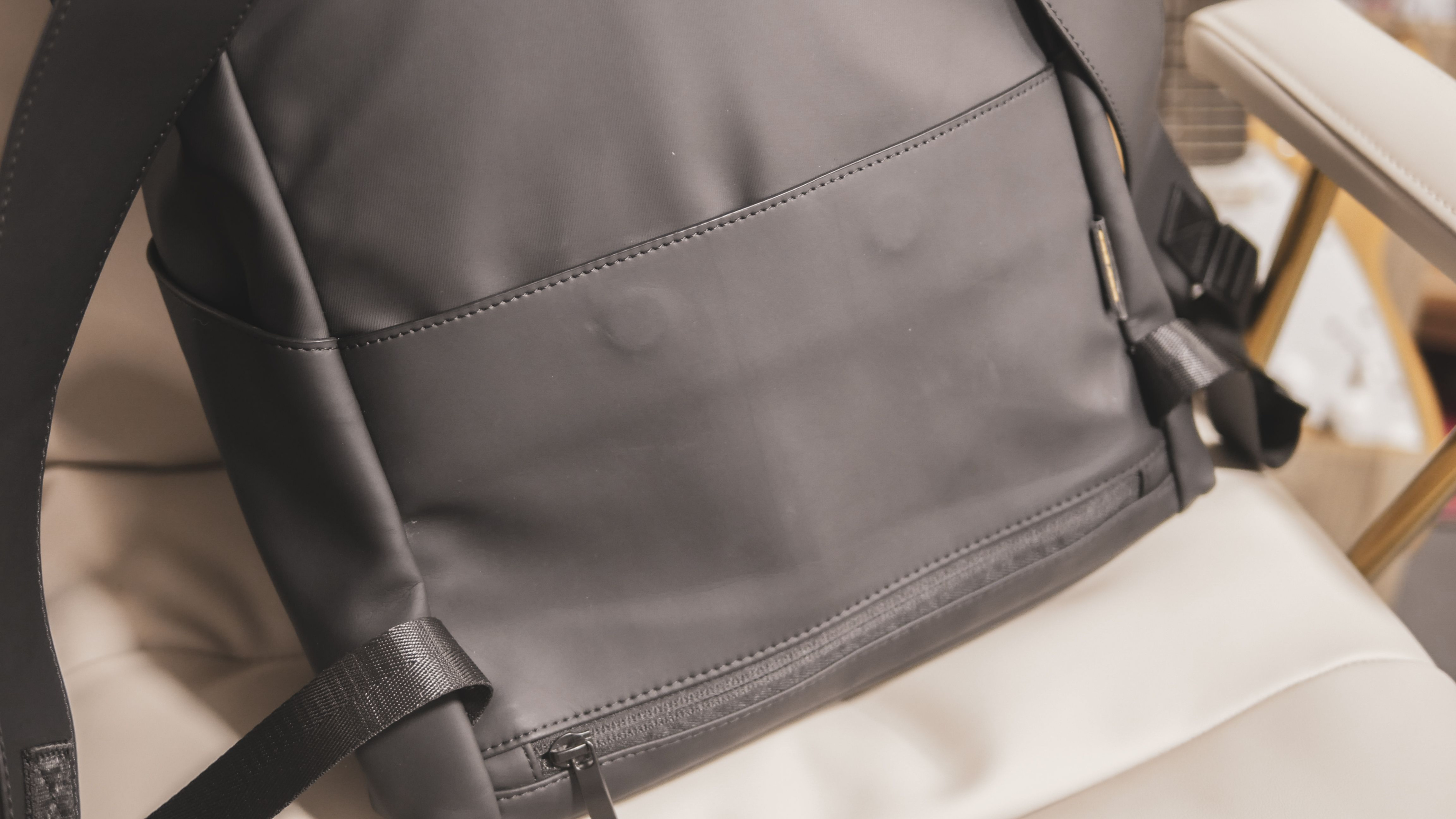 双肩包重量1kg,容量18升,整个外表面使用了合成革,亲肤的质感,表面有防水涂层,就算下雨天,也不用担心包内的电子产品或者纸质文件被淋湿。