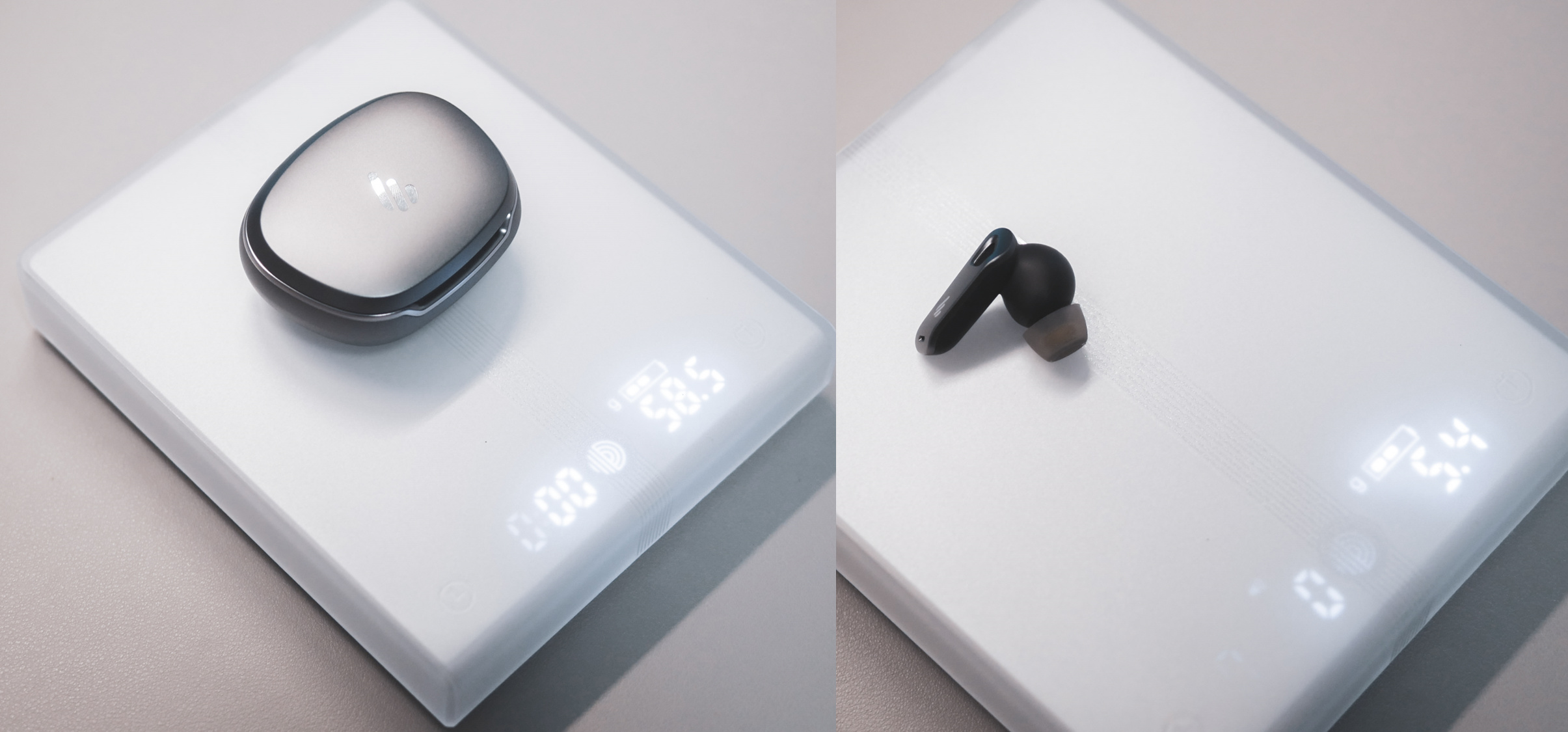 整体的重量很轻巧,单个耳机重量5.4g,带充电仓重量,续航方面,降噪开的情况下,带充电盒可以使用13.5h,降噪关的情况下可以使用18h。充电口采用的是Type-c的接口,支持快充。