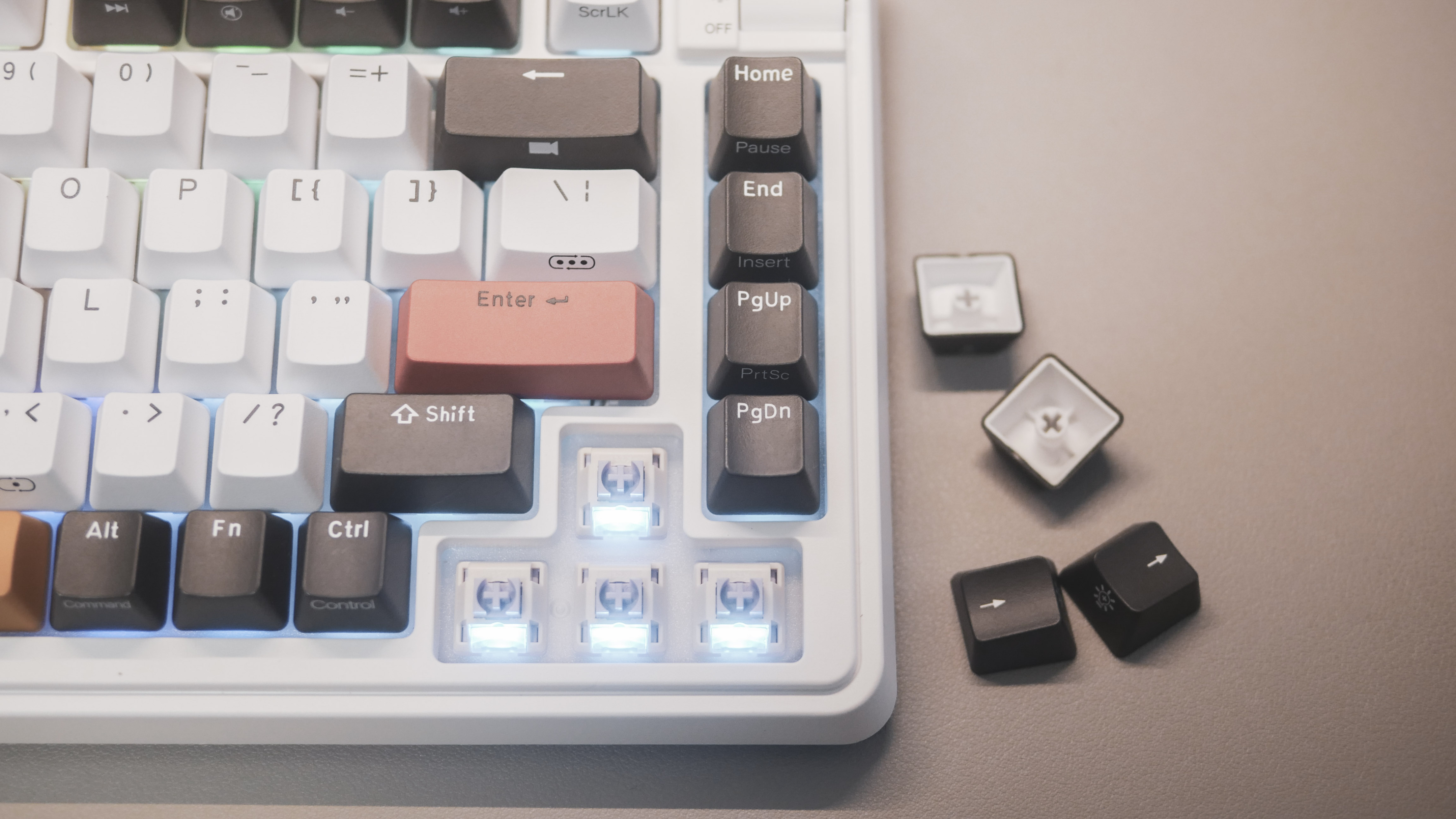 75键的配列也是非常初级用户使用的,既可以保证键盘小巧的体积,又可以拥有日常使用的独立方向键,功能键。算是一个非常完美的按键布局了。在宿舍桌面空间有限的情况下做到了我全都要。