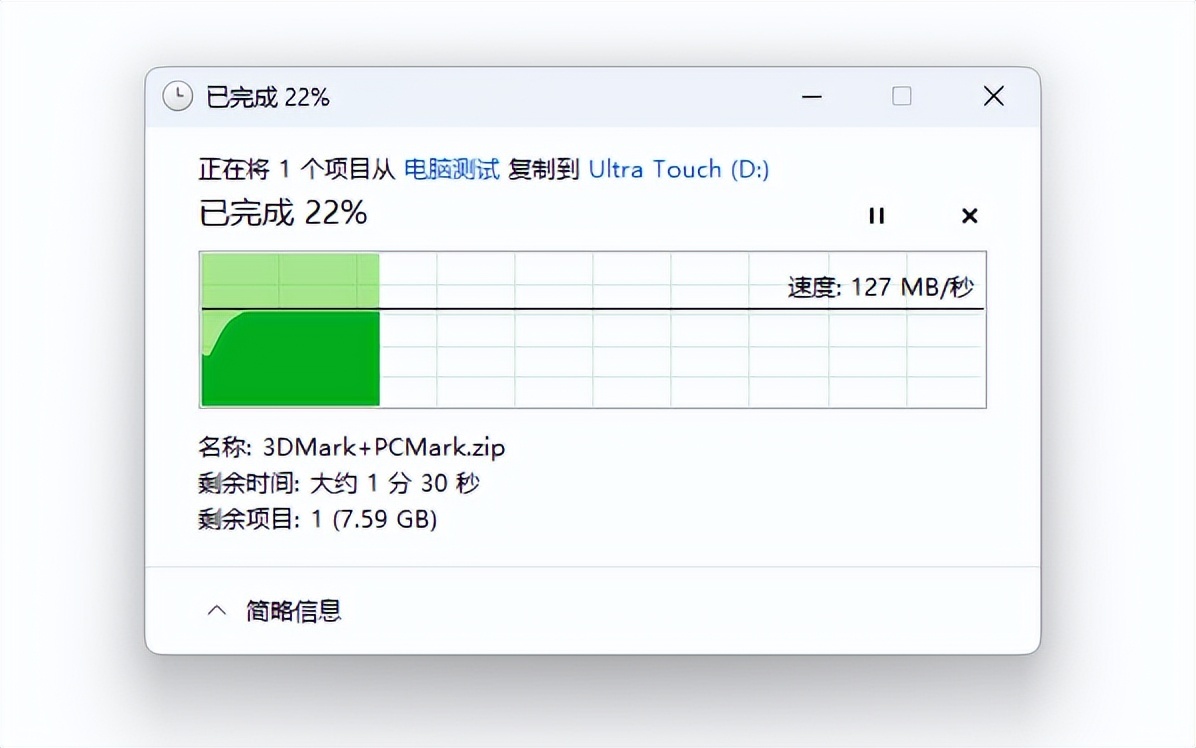 实测拷贝大文件,写入速度也基本上达到130MB/S。如下图所示。