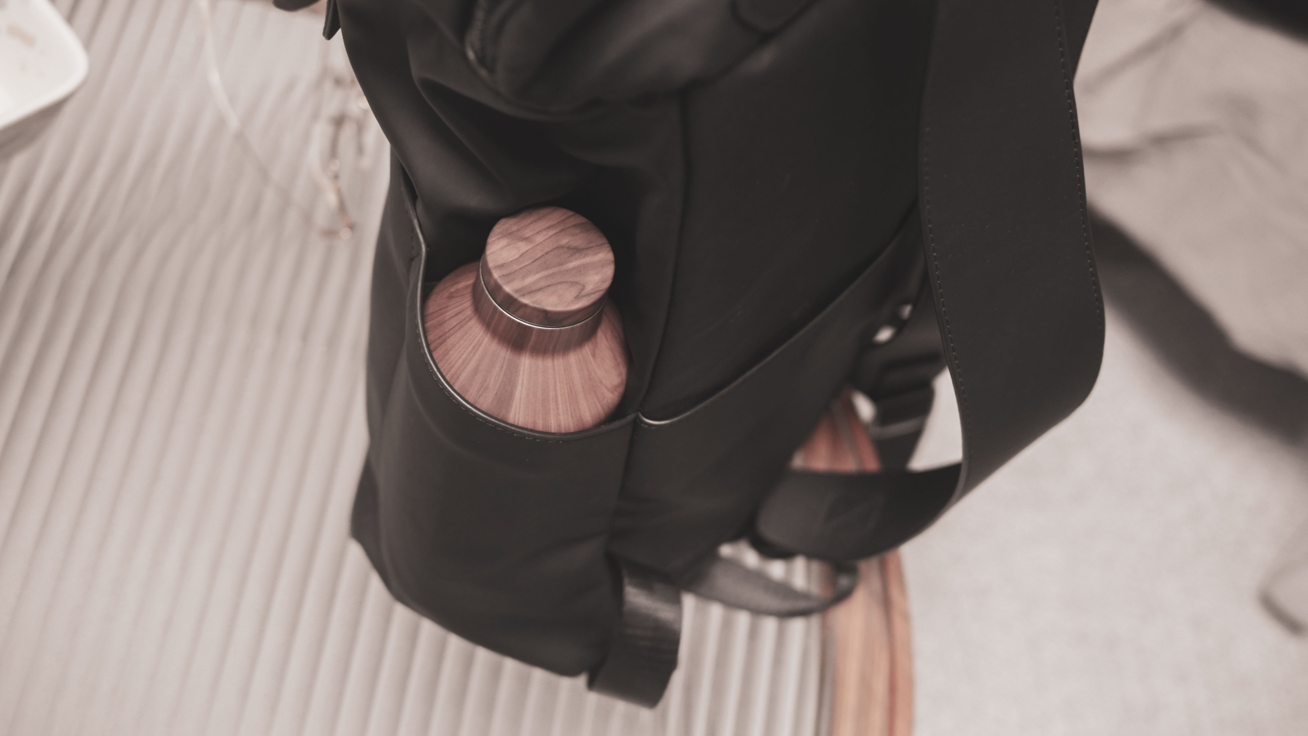 270ml的容量,体积不算大,拿在手中感觉非常小巧精致。木纹的表面处理使用的是木纹转印工艺,通体手感漆,触感非常丝滑。