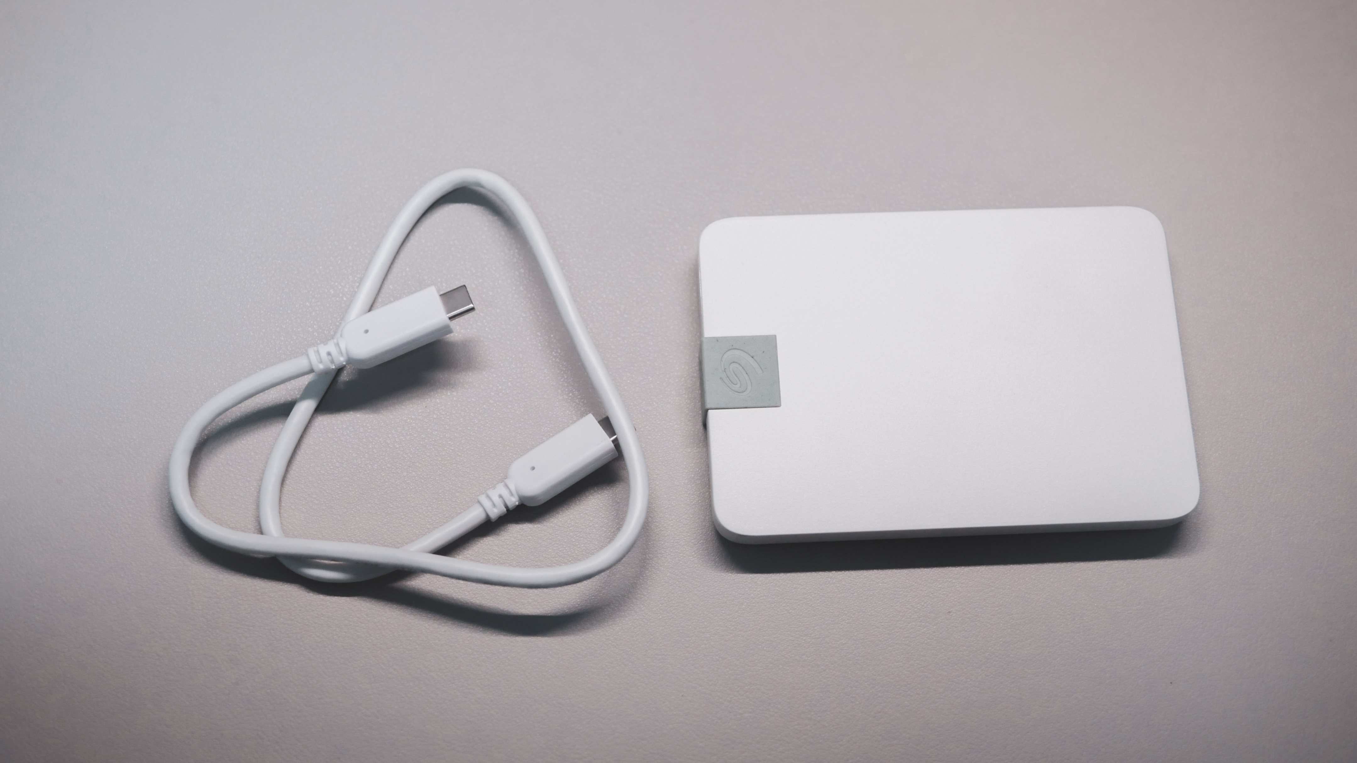 这款硬盘体积小巧,白色的配色,整体外观很年轻化,材料上使用了可再生材料。整个系列的硬盘都很轻薄,2T的厚度只有13.2mm,重量0.168kg,日常出行可以轻松放进背包,几乎感受不出来重量。