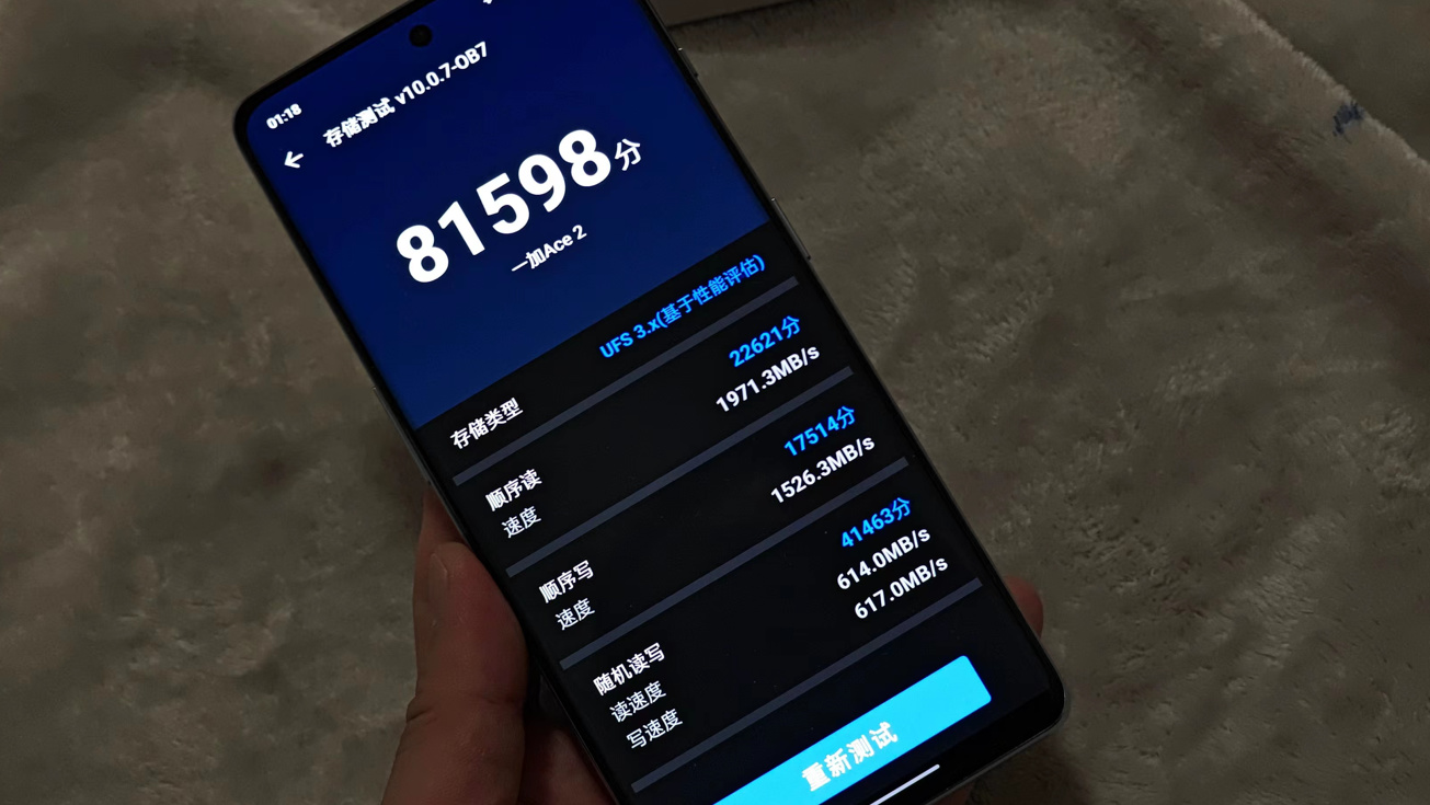 存储方面,顺序读取可达1900+MB/S,写入也可以达到1500+MB/S。随读写速度基本上维持在600+MB/S。这对于日常大型手机游戏的加载、4k视频的录制,都很有帮助。