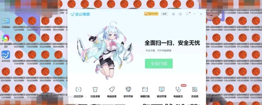 实验中当用户将这两个软件安装在同一台电脑上时,毒霸姬很快就识别出了坤坤病毒的威胁。用户选择了“允许存在”,同时开启了金山毒霸的铠甲防御。虽然P2P下载页面再次弹出,毒霸姬也跳出来阻止安装,但用户仍然允许其操作。很快,大量的坤坤窗口再次弹出,电脑被篮球占领。毒霸姬无法忍受,发现了病毒并建议立即清除。