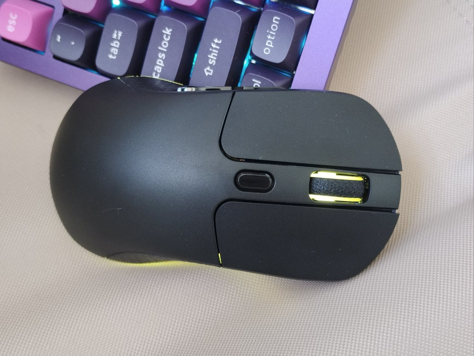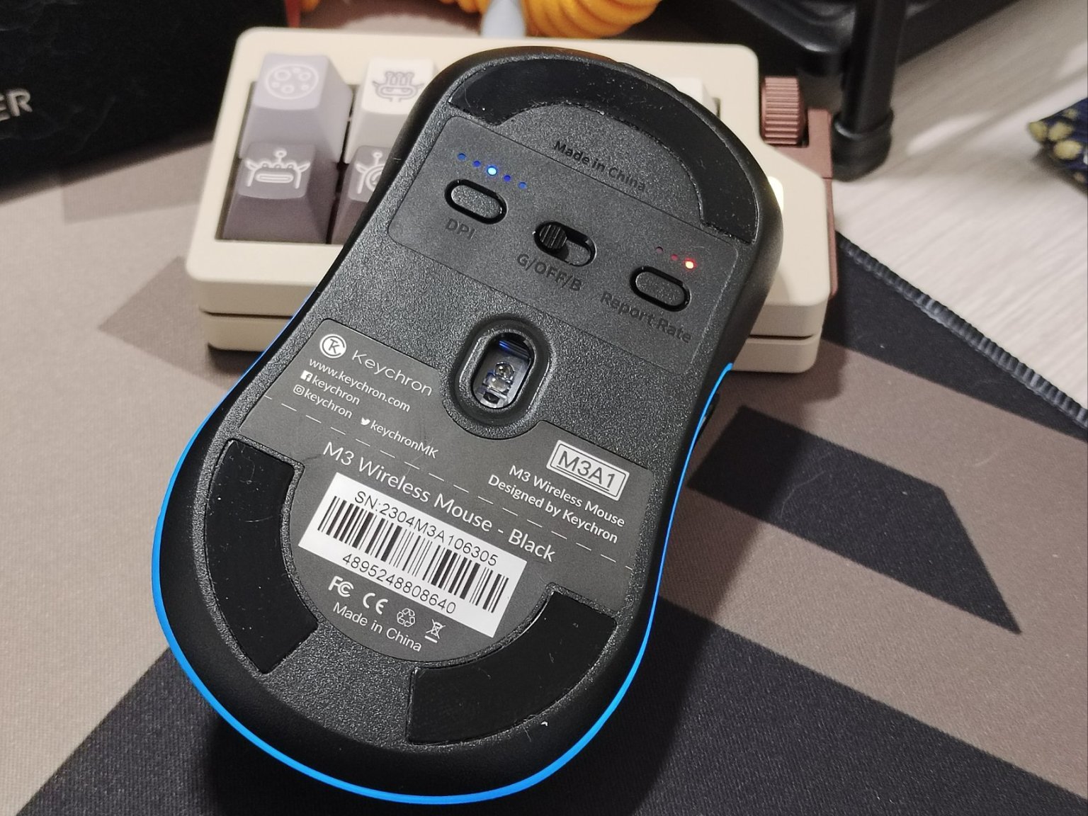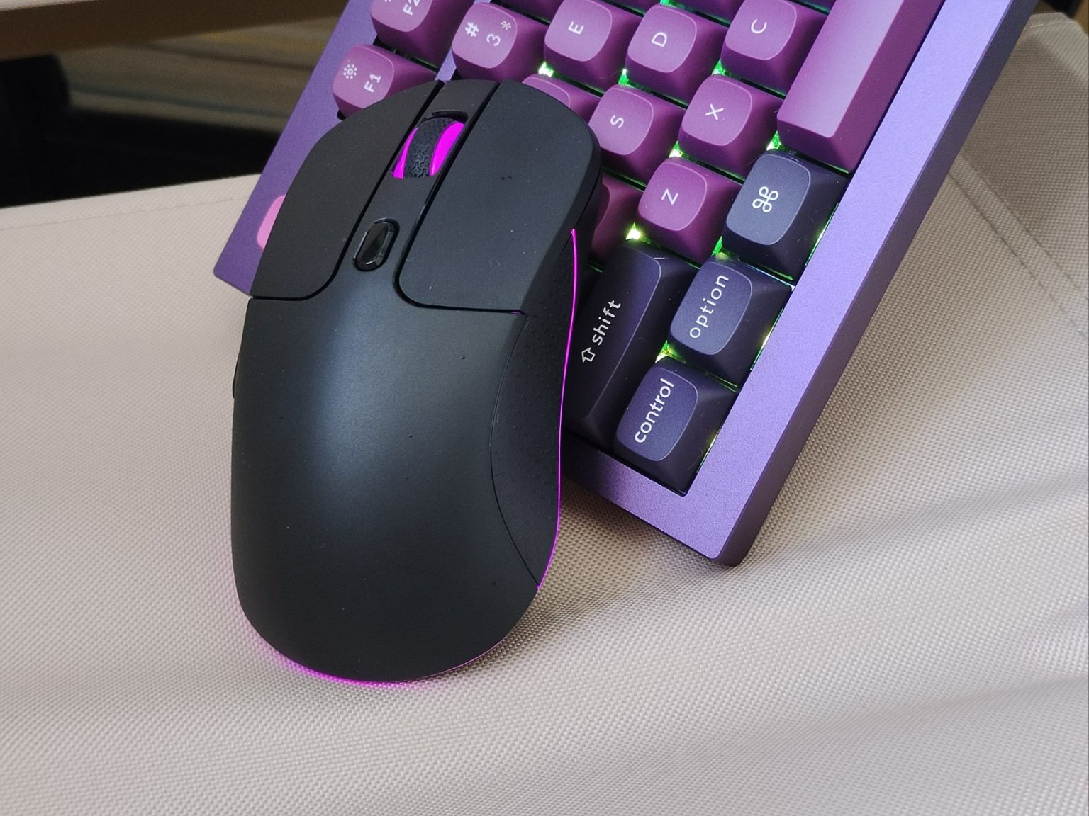 鼠标方面其实比较简单,最近国内各家厂商都在卷鼠标,所以更多人开始尝试使用国产鼠。依旧是渴创,其生产的M3鼠标在使用PAW3395传感器的同时价格仅为200,链接模式是无线三模而且接收器有USB-A/C两种,对于苹果用户以及笔记本用户来说还是比较方便的,重量79g中规中矩,不过这款鼠标有几个我比较喜欢的功能: