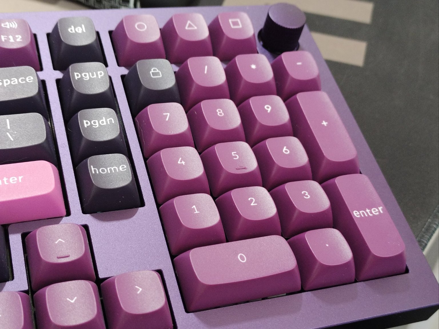 而数字键盘区终于是一个有2U长度0键的键盘了,这点对使用习惯104键盘的玩家可以说是极度友好。毕竟改变习惯期间在使用上的影响还是很大的。