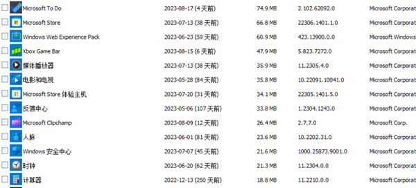 卸载这些应用也会释放一些占用的空间,不过别指望这些软件能解放多少C盘,毕竟大部分应用容量都不大,上图是自己电脑中的一些内置应用,有些是原生的,有些是后来装的,这些容量还算是大的,小的可能不到1MB。