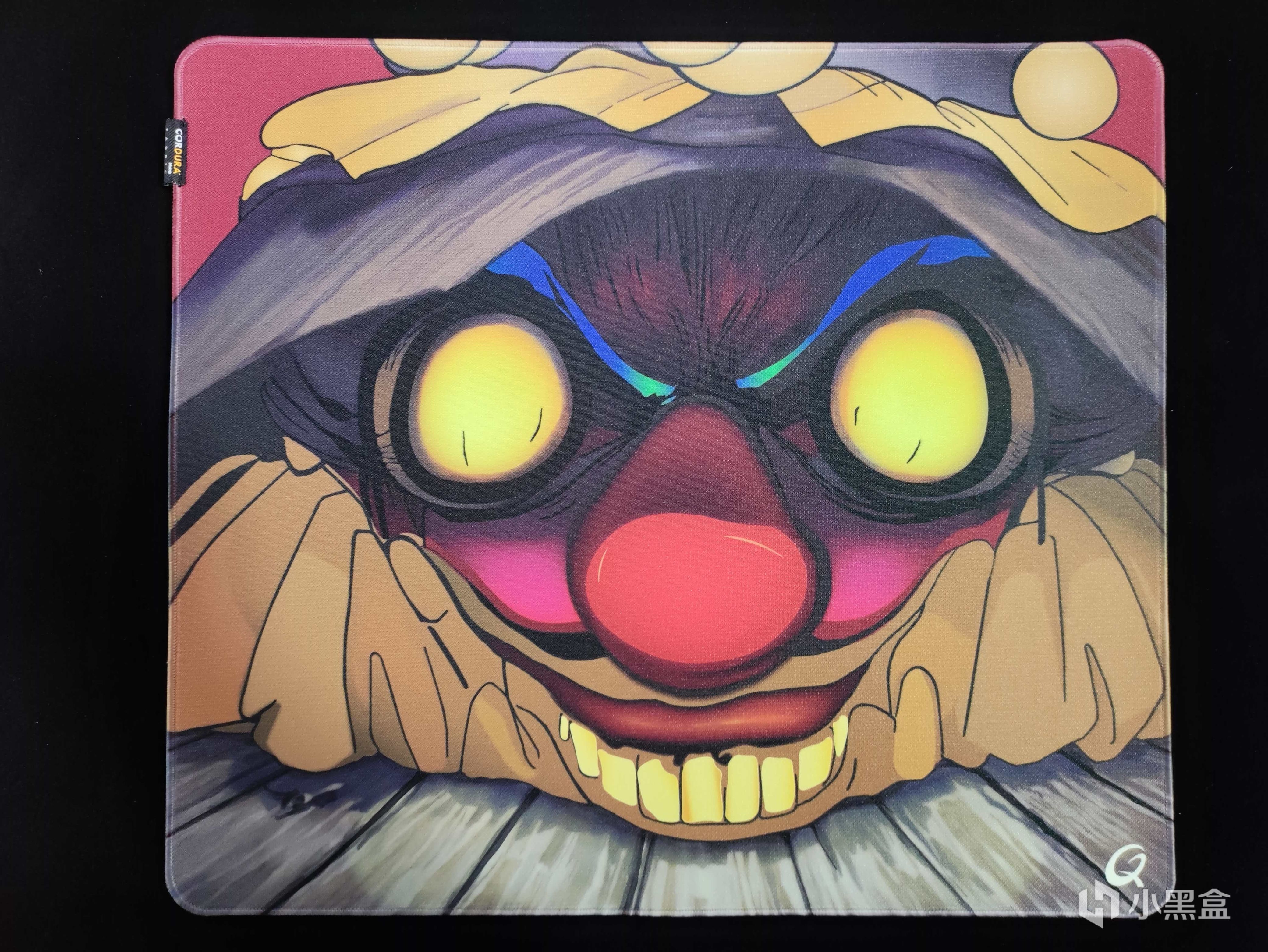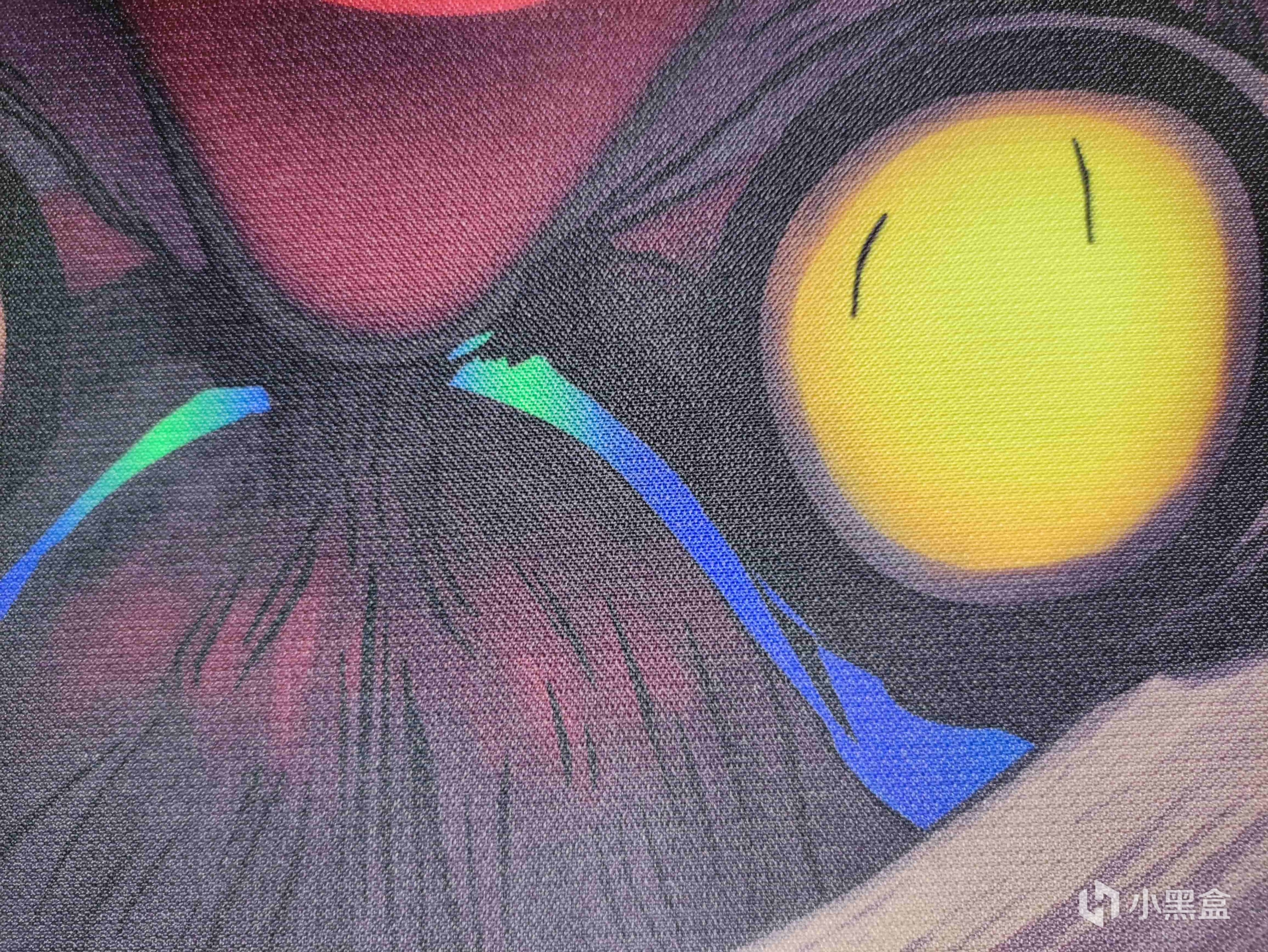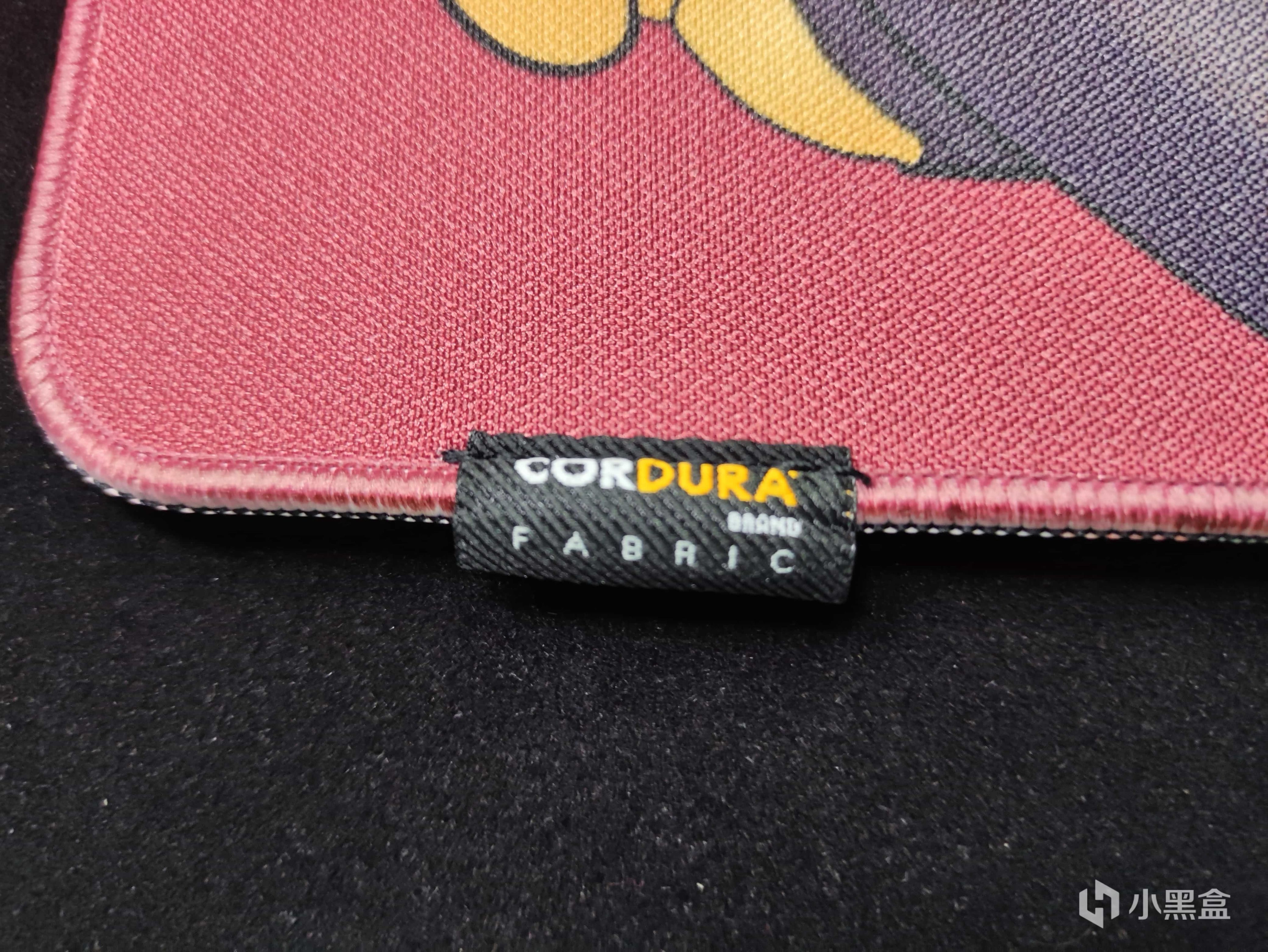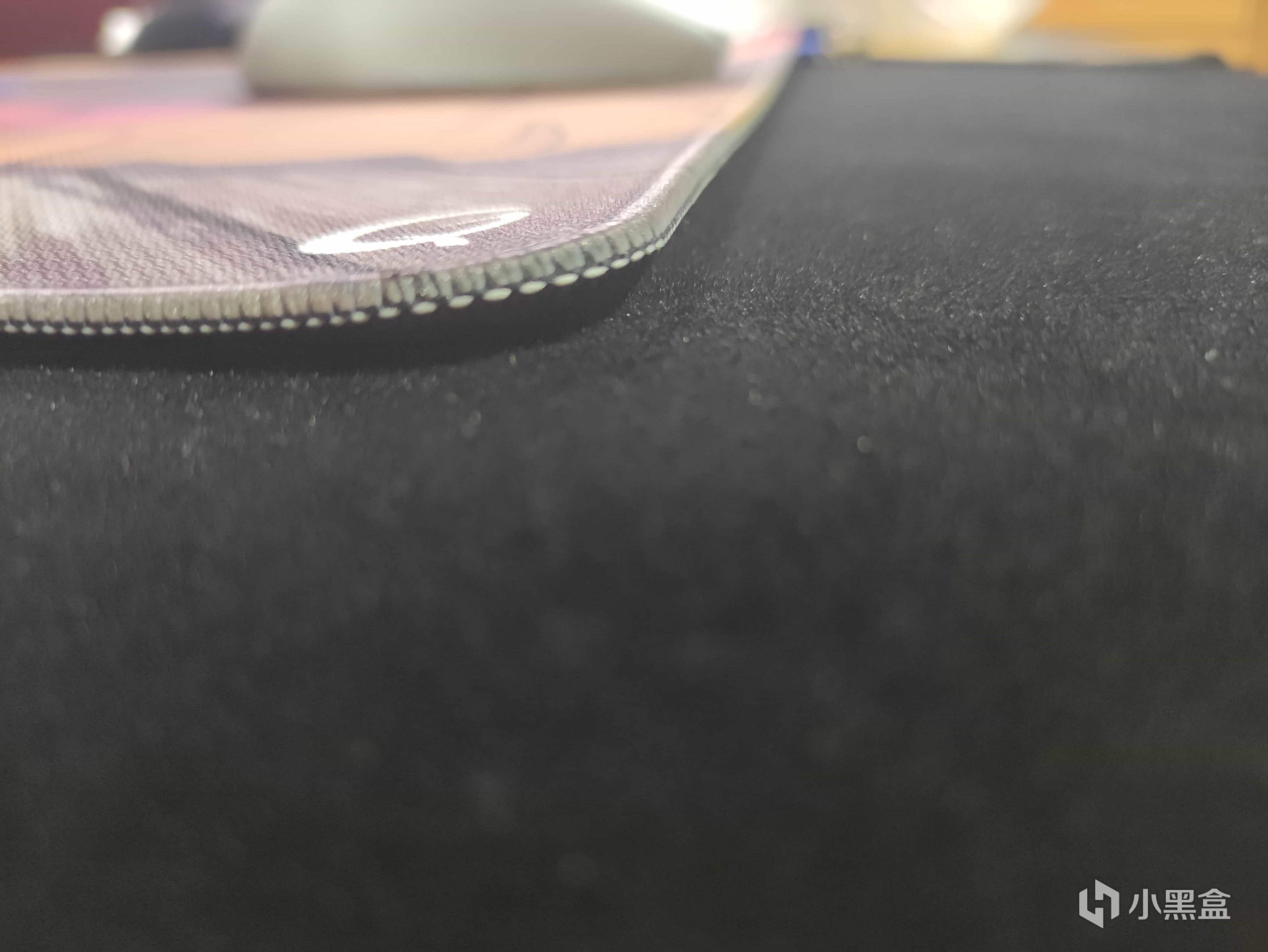这个包边十分的细致,包边基本上和鼠标垫的表面是齐平的,然后在包边上也可以看到鼠标垫上的图案,独属大厂的先包边再印刷的流程。