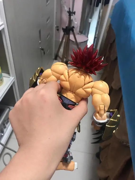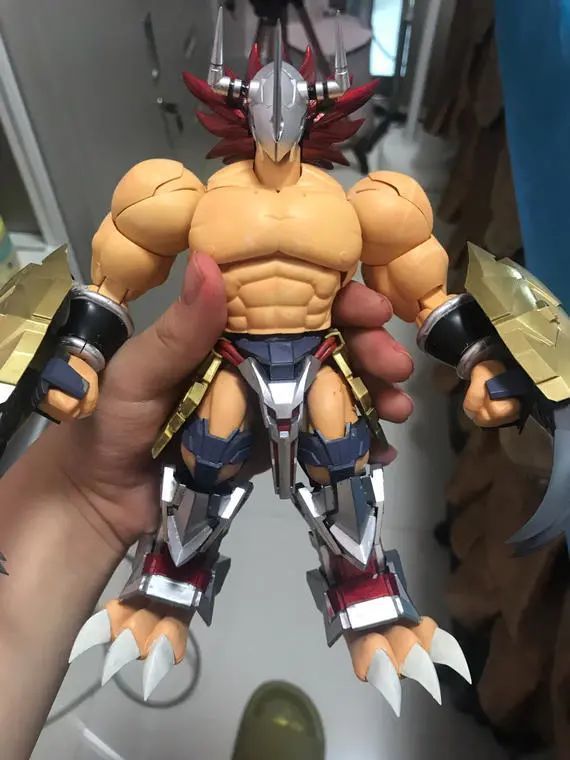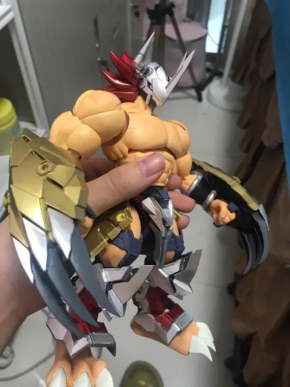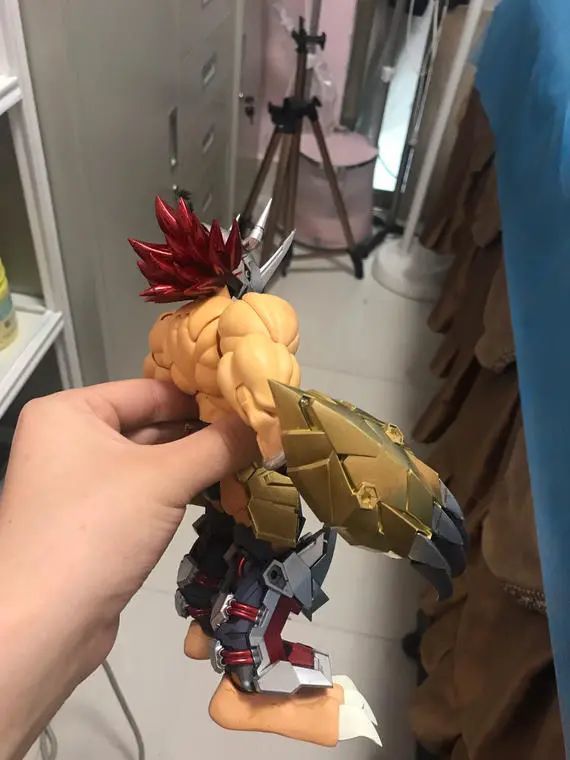 模友使用肌肉感十足的模型素體搭配上鋼鐵暴龍獸的頭部和四肢,看起來像是鋼鐵暴龍獸變成了超級賽亞人形態。如果數碼寶貝中鋼鐵暴龍獸這個形態估計就沒反派什麼事了吧。雖然看起來整體不是很協調,但是還是比較有趣的。