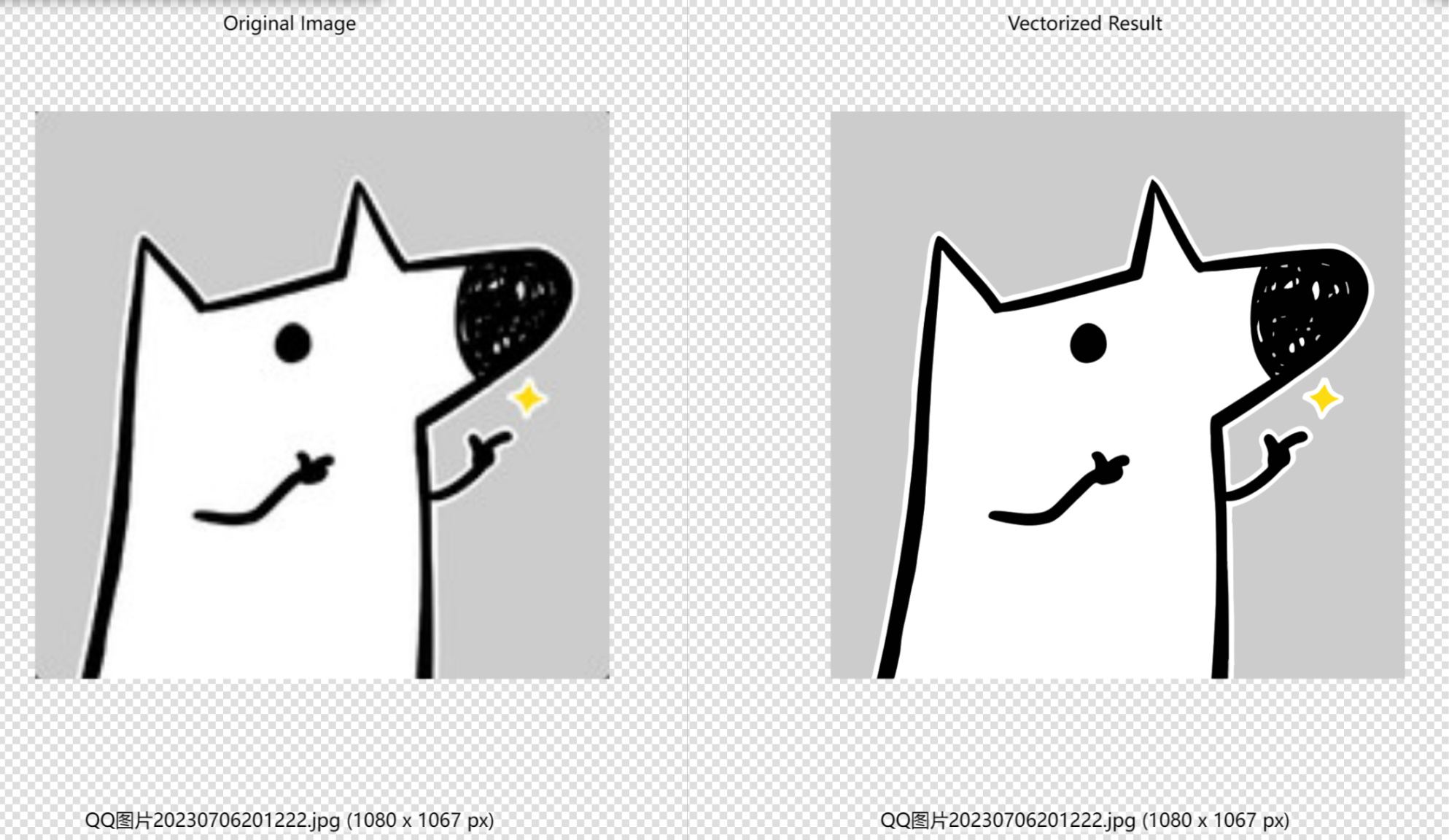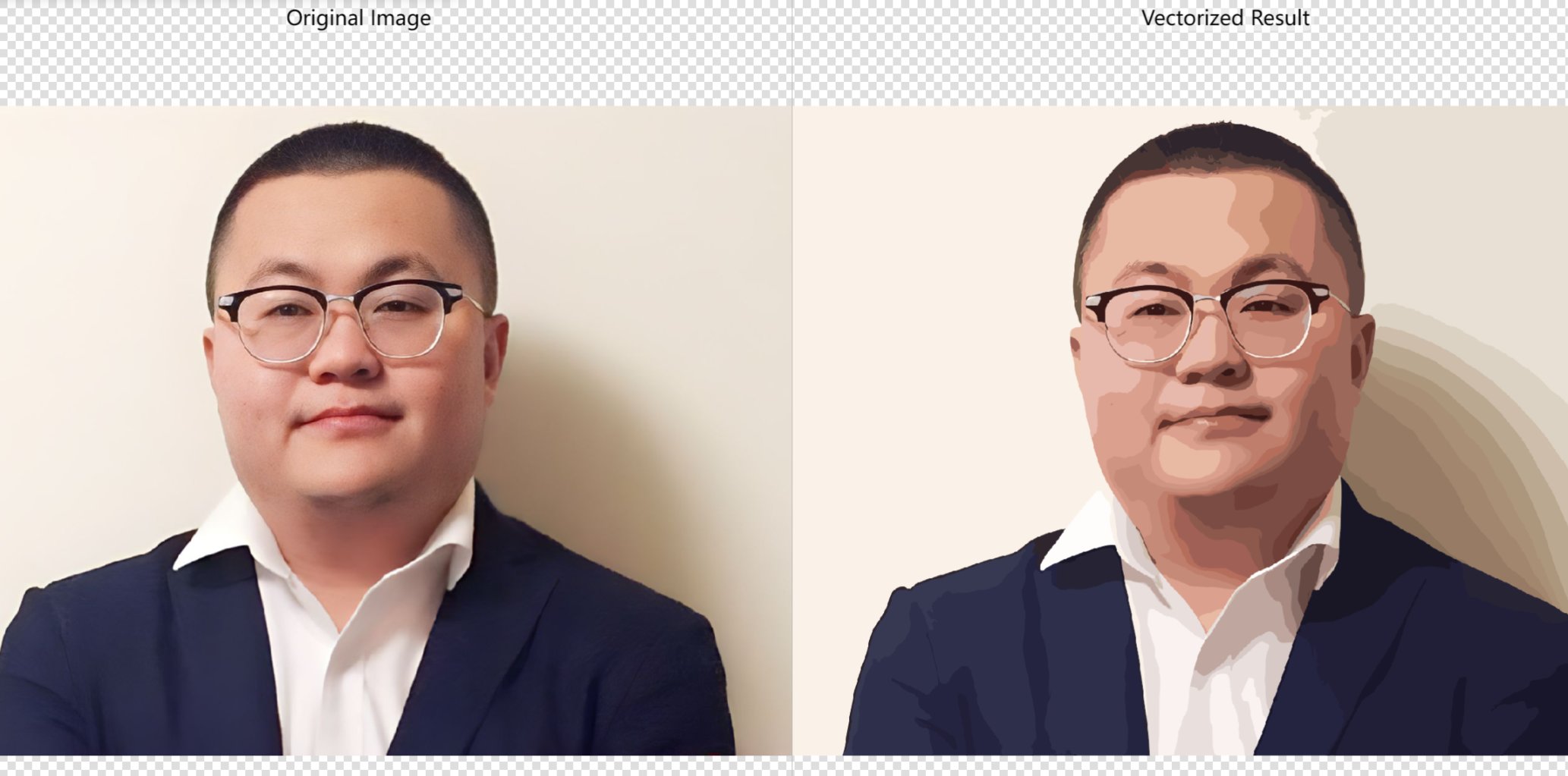 对于用于logo、头像的图片,可以通过Vectorizer转换为矢量图来提升清晰度,处理过程也很快。人像什么的就不用考虑了,因为会呈现这样的效果——