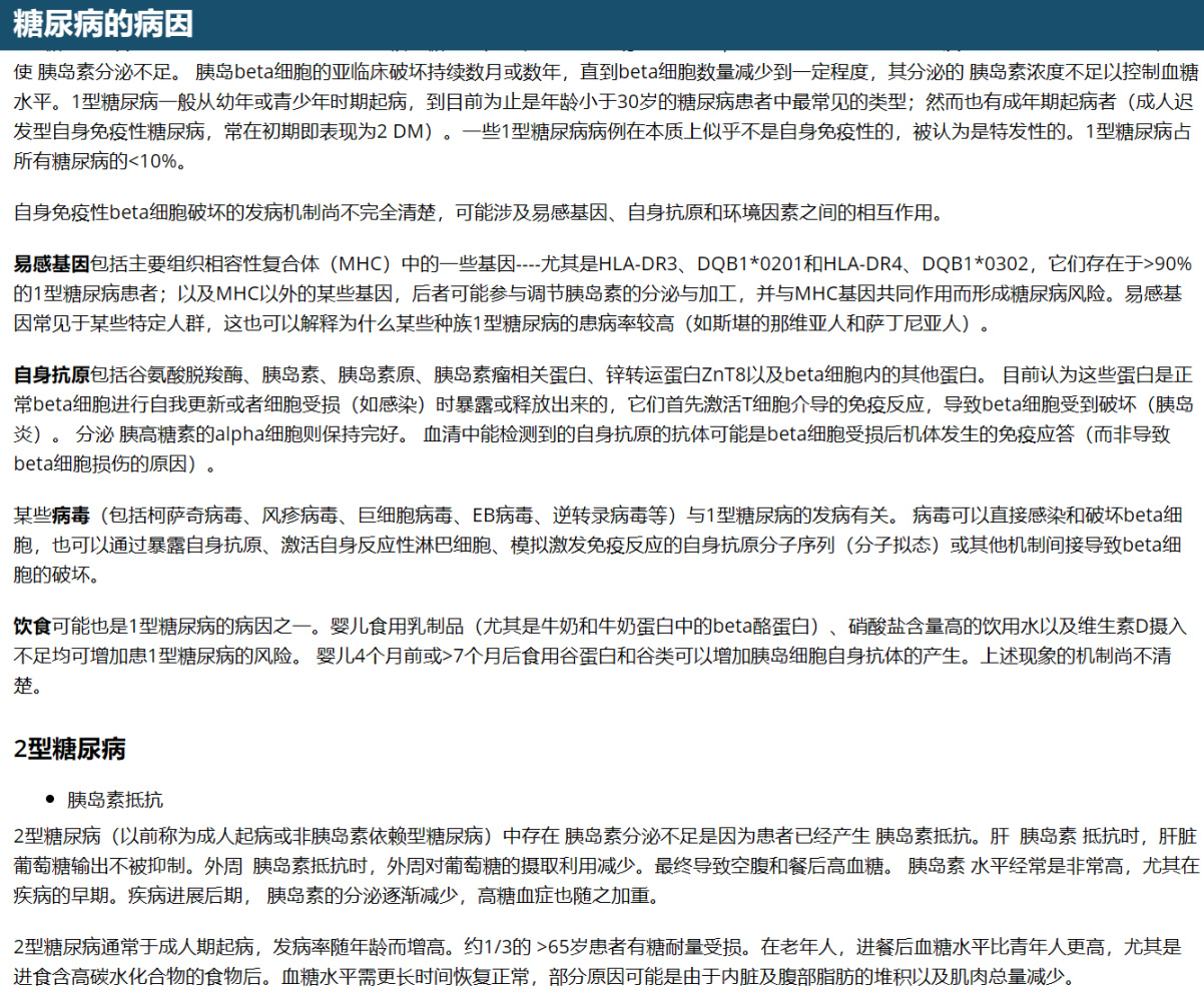 值得一提的是,大众版和专业版对糖尿病的描述也不尽相同,专业版更加细致、专业,更趋向于医疗人员的辅助工具或学习网站。
