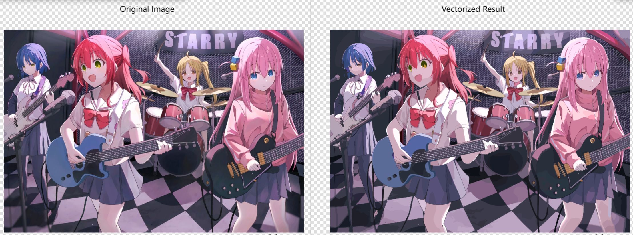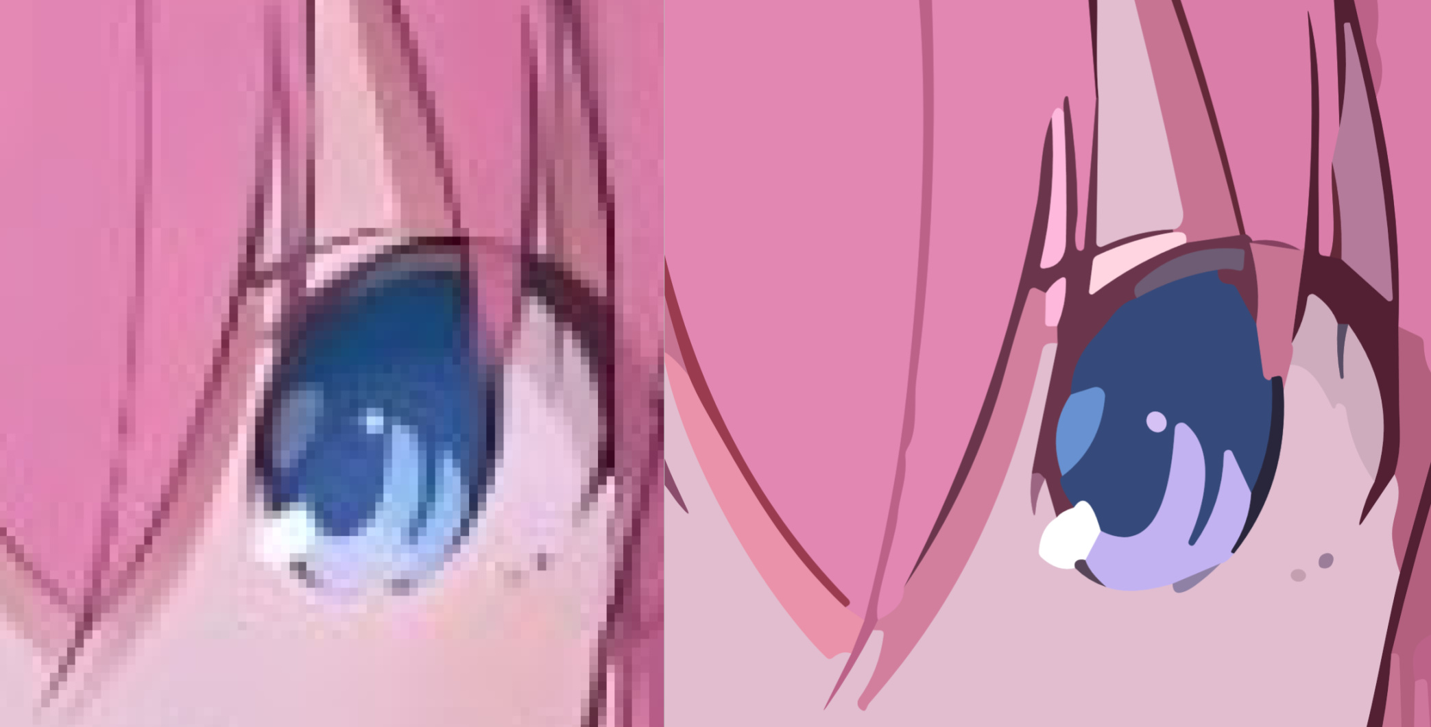 试了一下二次元类型的图片,也可以进行矢量化处理,放大之后效果很明显,不错!