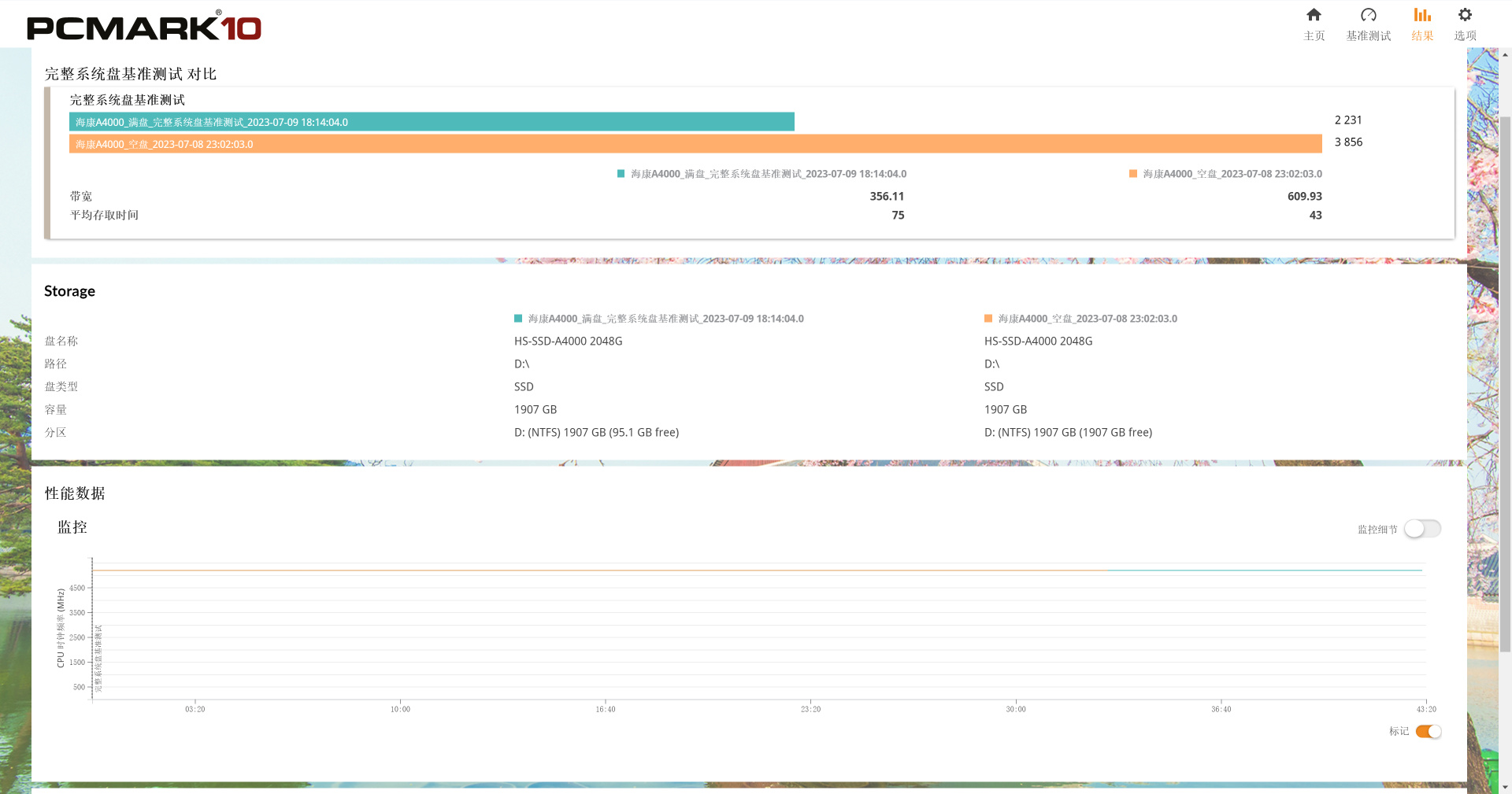 在這裏,我們將海康A4000空盤與95%滿盤狀態下的測試成績進行了對比。