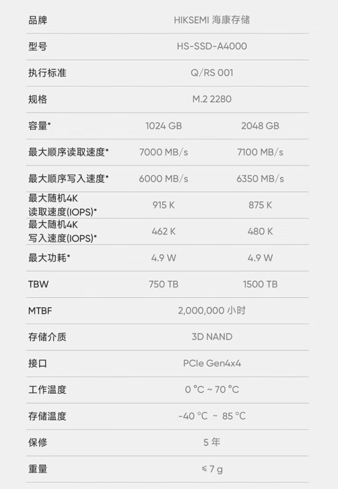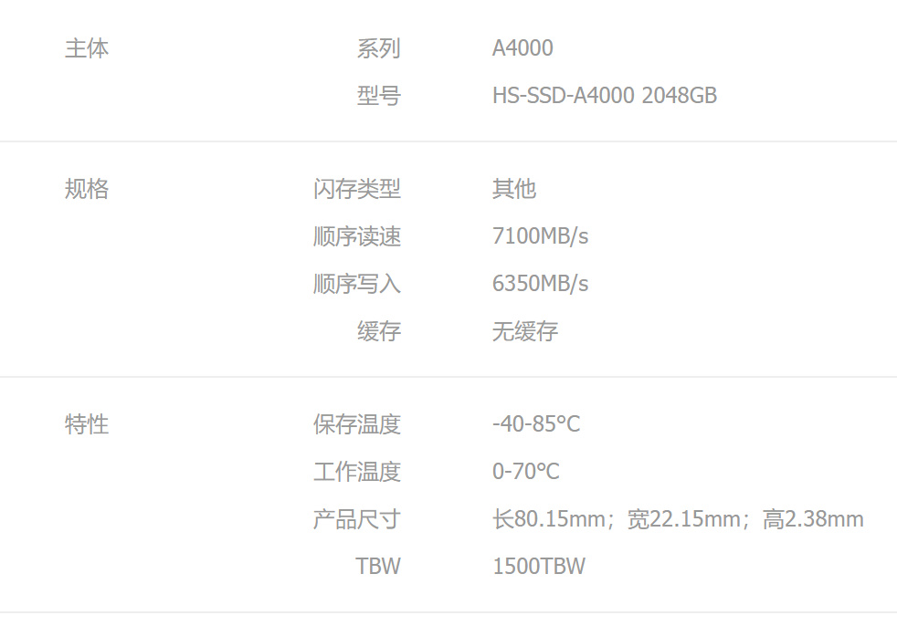 海康A4000的質保期爲5年,幾乎是各家消費級SSD大廠統一的標準,不過海康A4000的2T版本給到了1500 TBW,這就真的出乎我意料之外了。