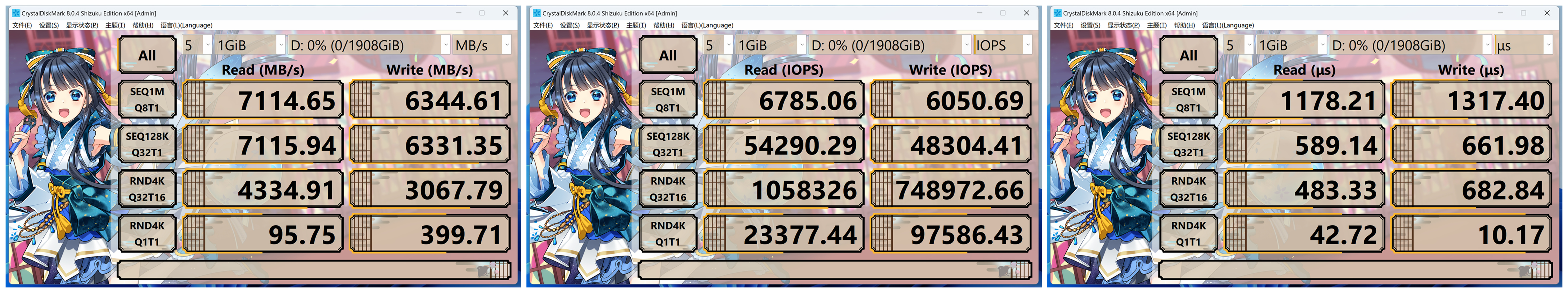 空盤狀態下,海康A4000的順序讀取速度爲7114MB/s,順序寫入速度爲6344MB/s,均超過了官方標稱的性能參數,是目前PCIe4.0 SSD的滿速水準。