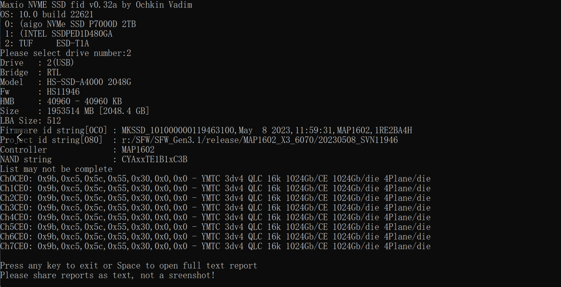 目前flash id也已經可以識別出來,海康A4000上搭載的是長江存儲最新一代的QLC顆粒: