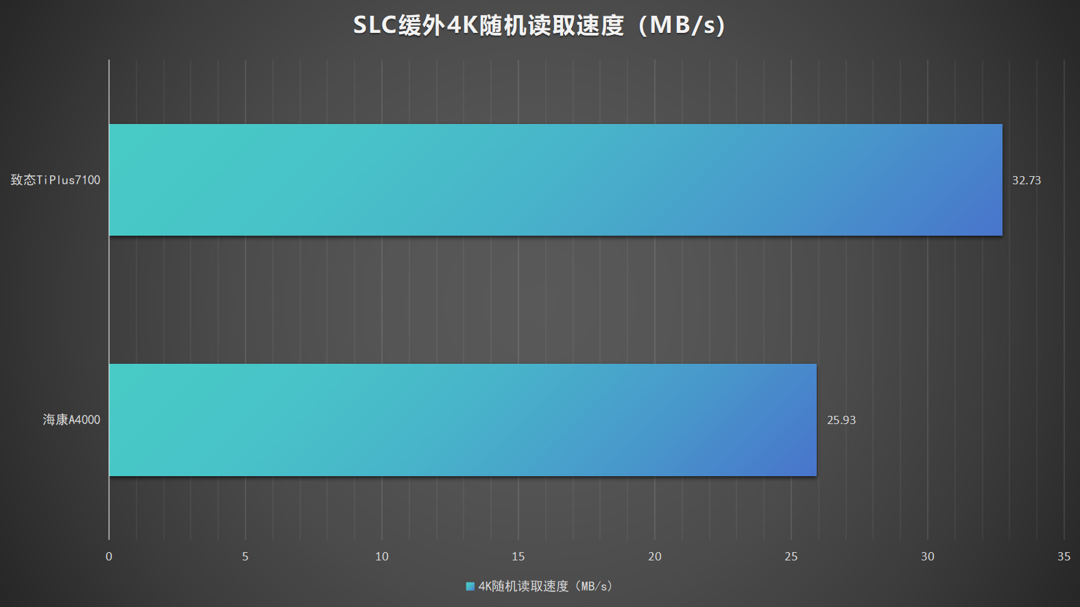 鑑於此,我們對海康A4000的緩外4K隨機直讀性能進行了測試,並和國產SSD的中流砥柱致態TiPlus7100 2T進行對比: