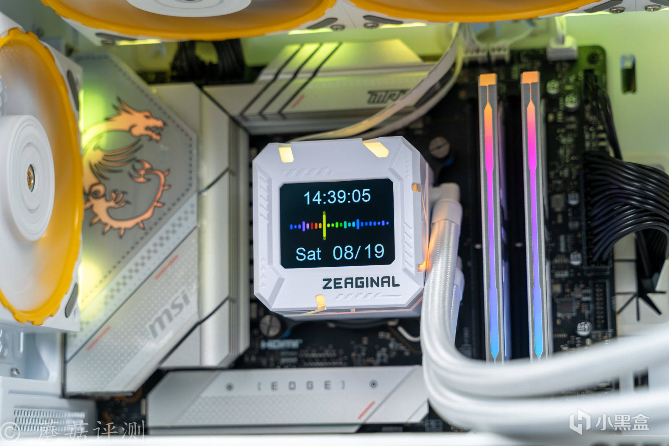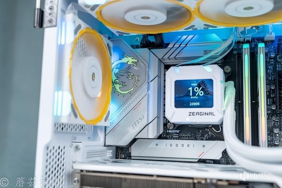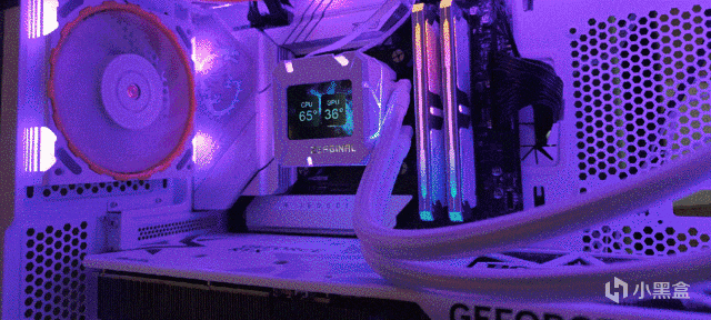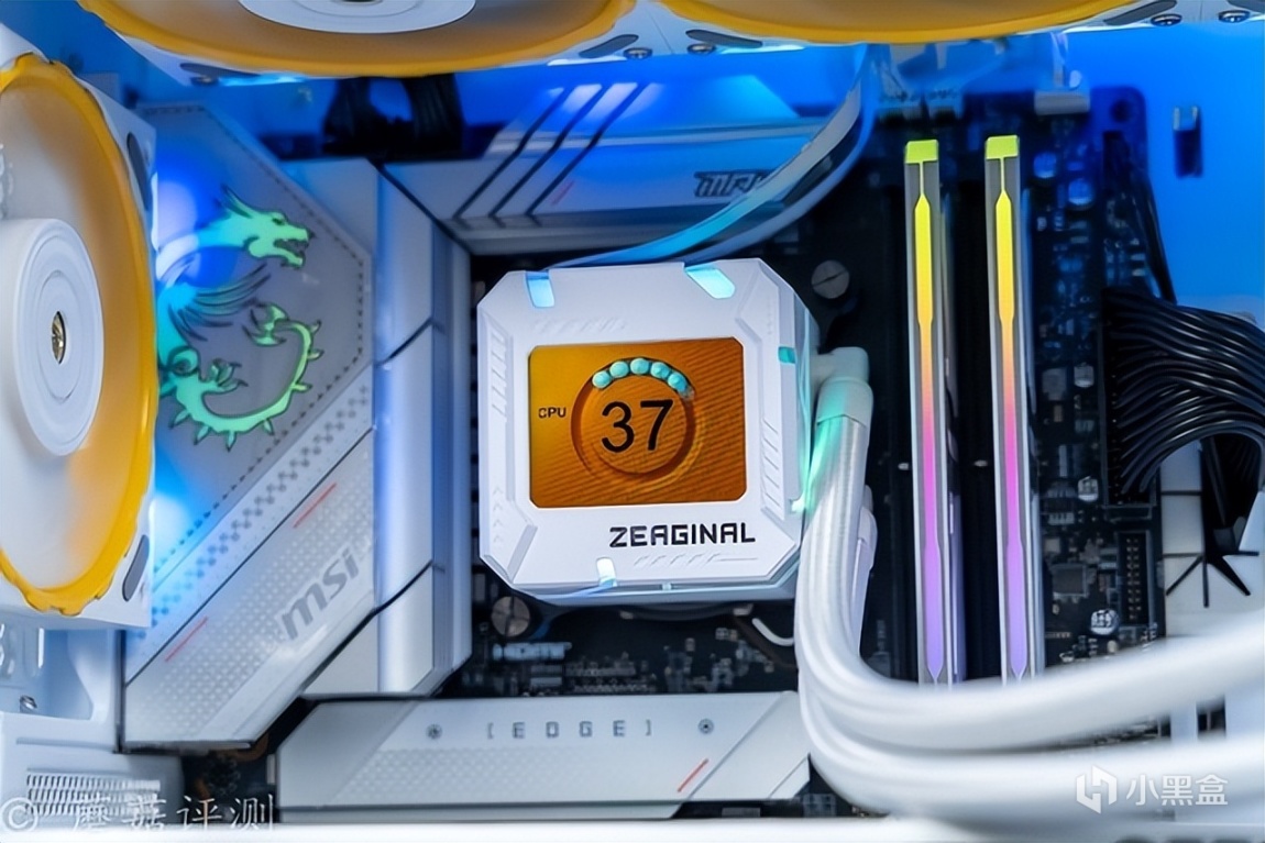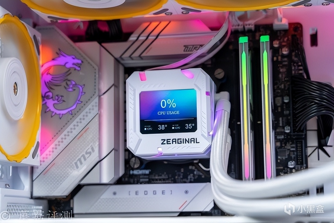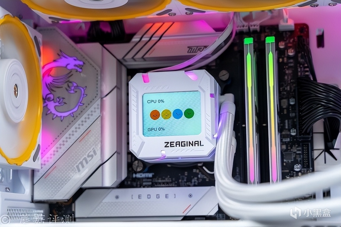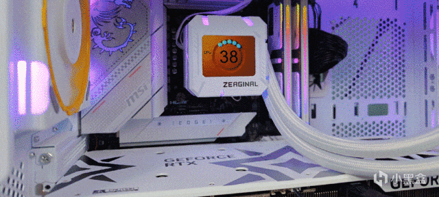 ▼水冷头侧面的RGB灯带颜色过渡均匀,效果不错。