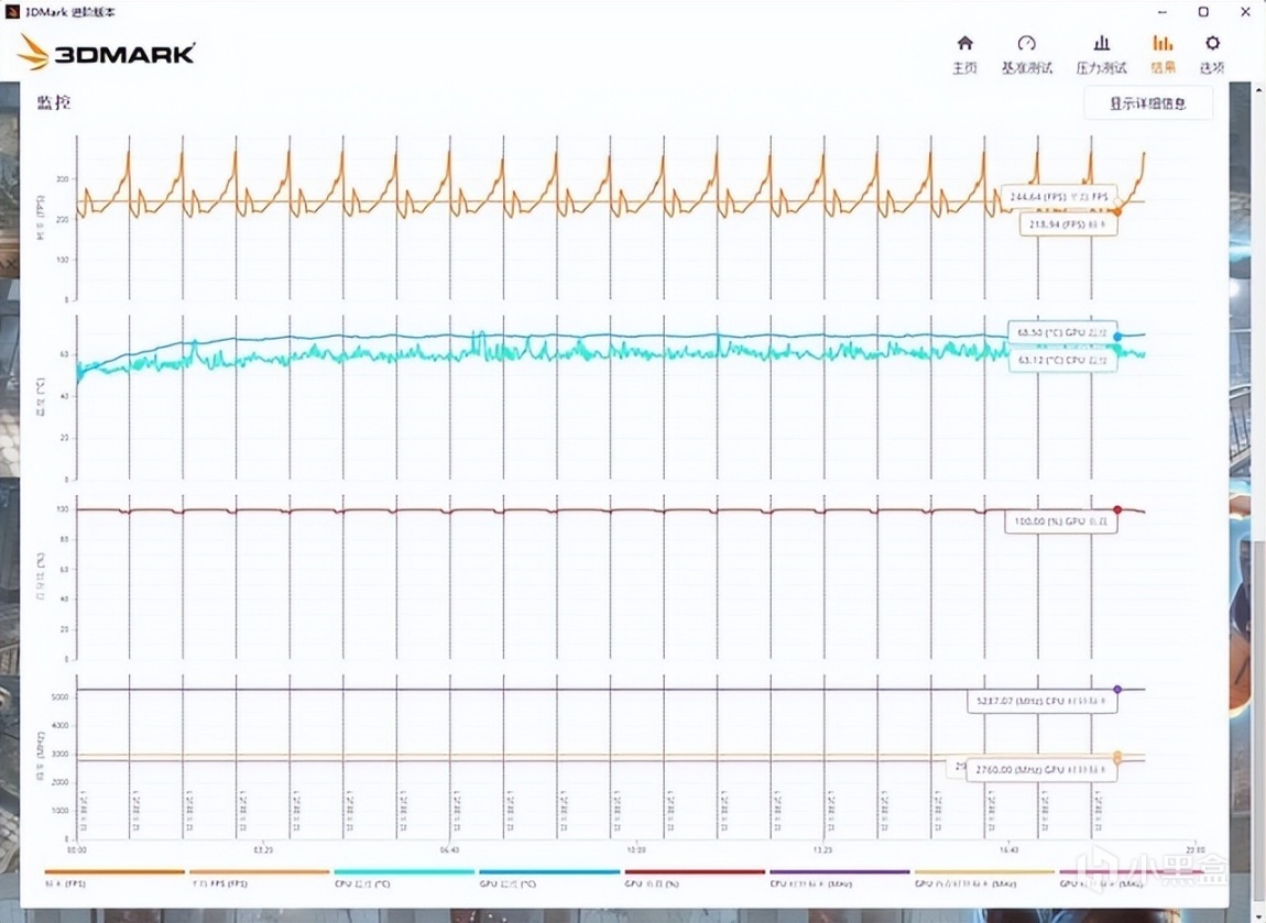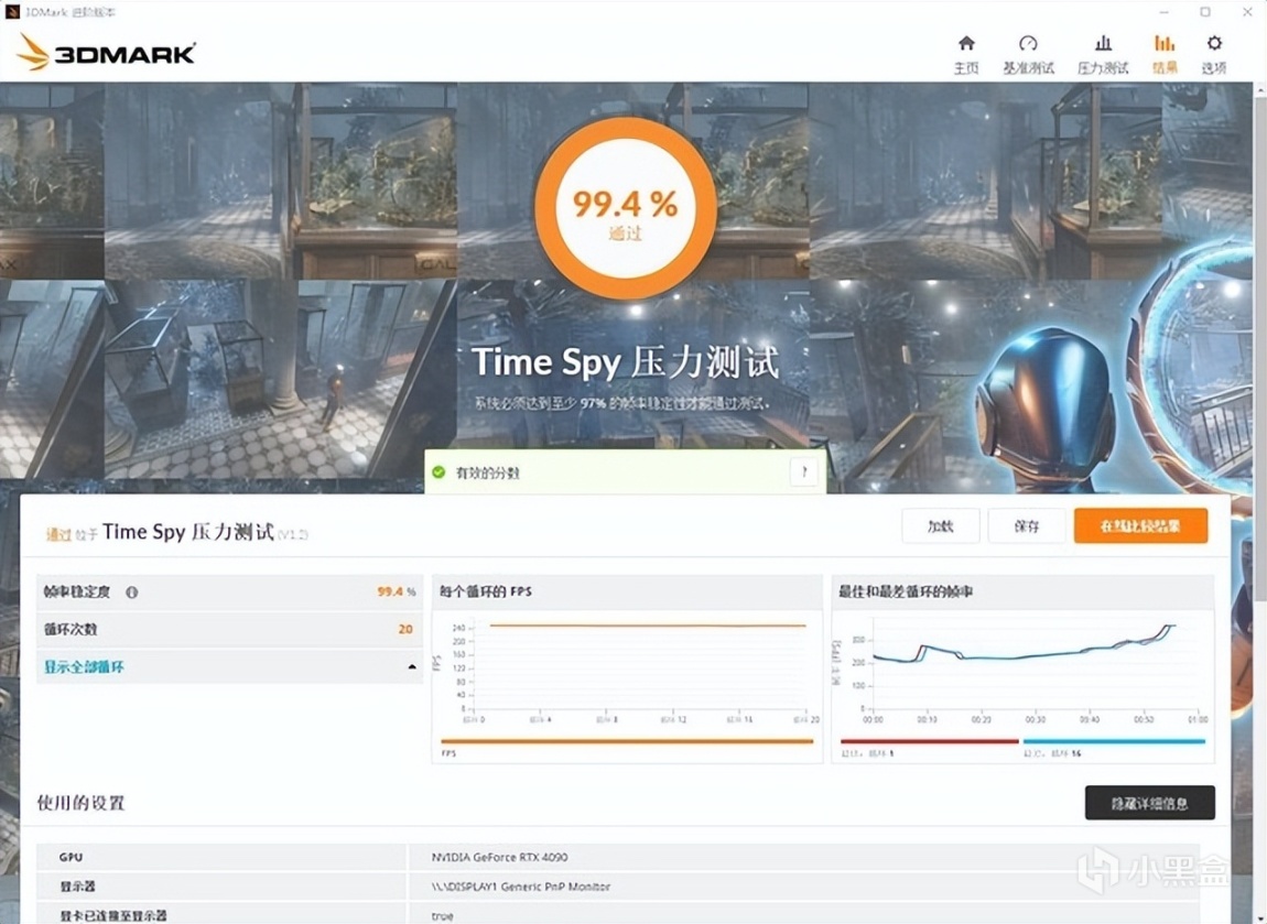 ▼跑个3Dmark的压力测试,TS模式,帧数稳定率在99.4%,非常稳定。