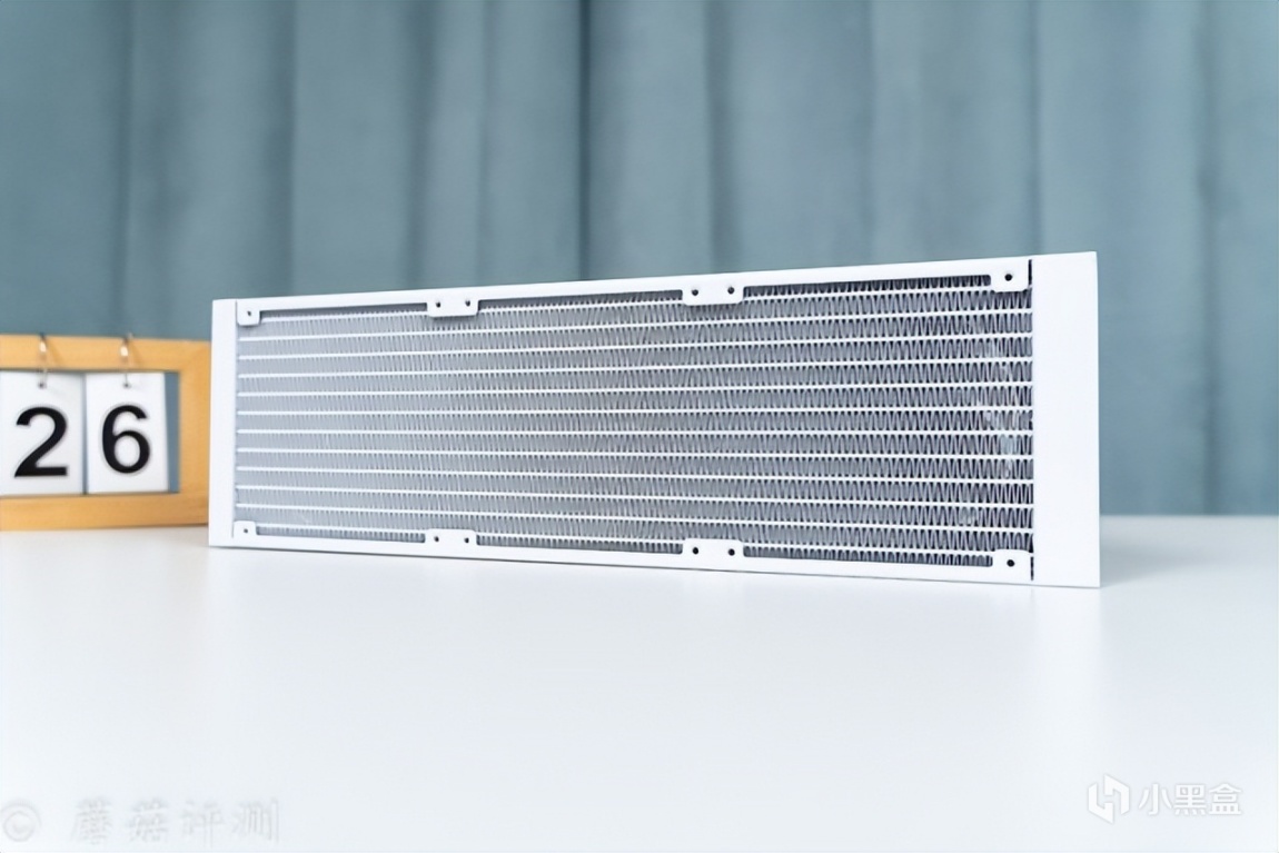 ▼水冷排的水道有12条,进、回水各6条,保证一定的散热鳍片的密度。