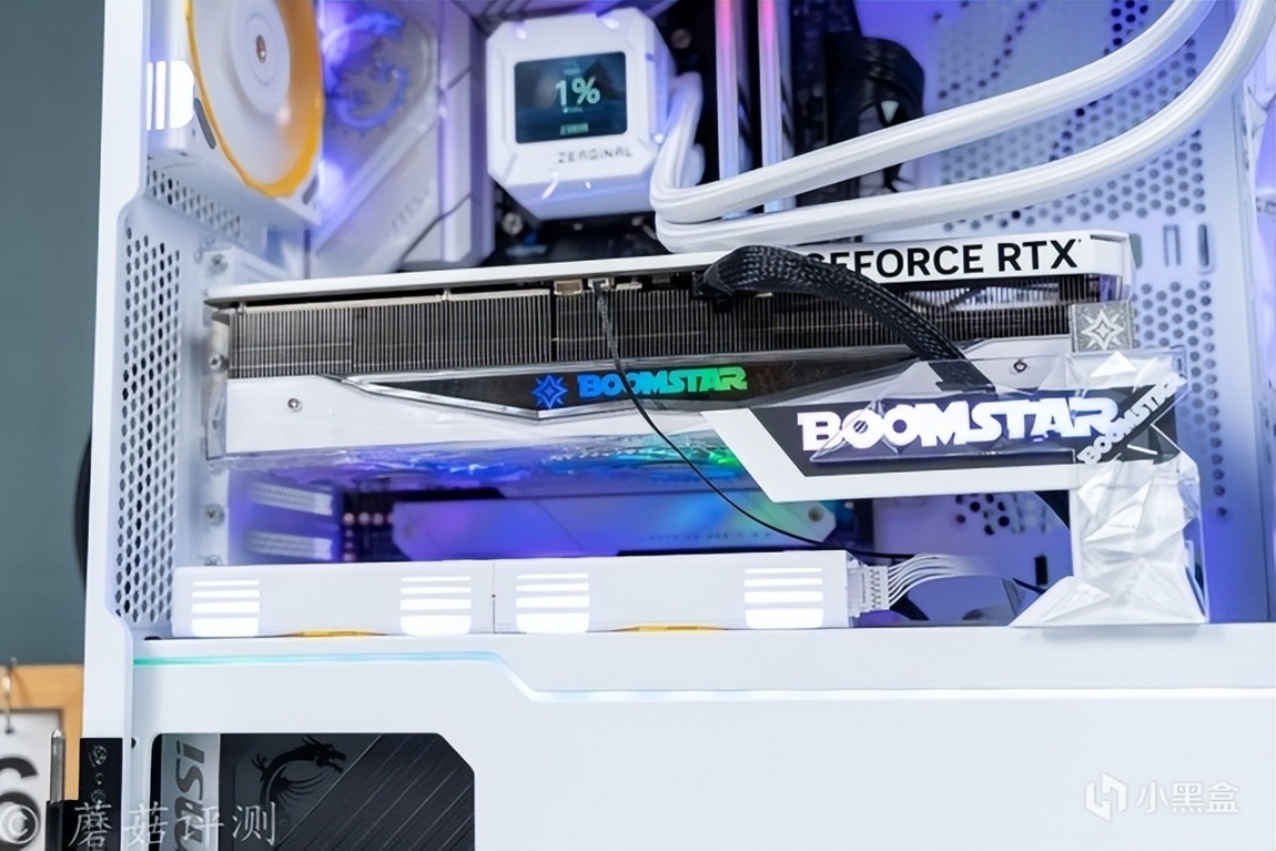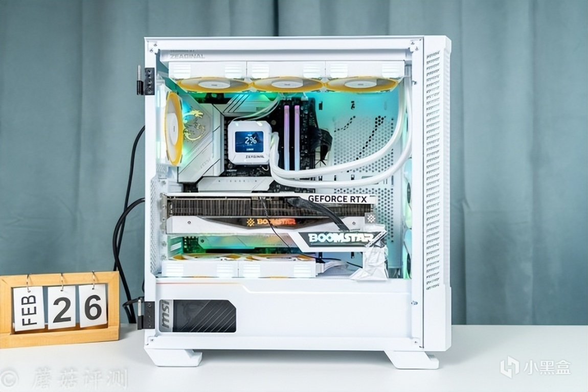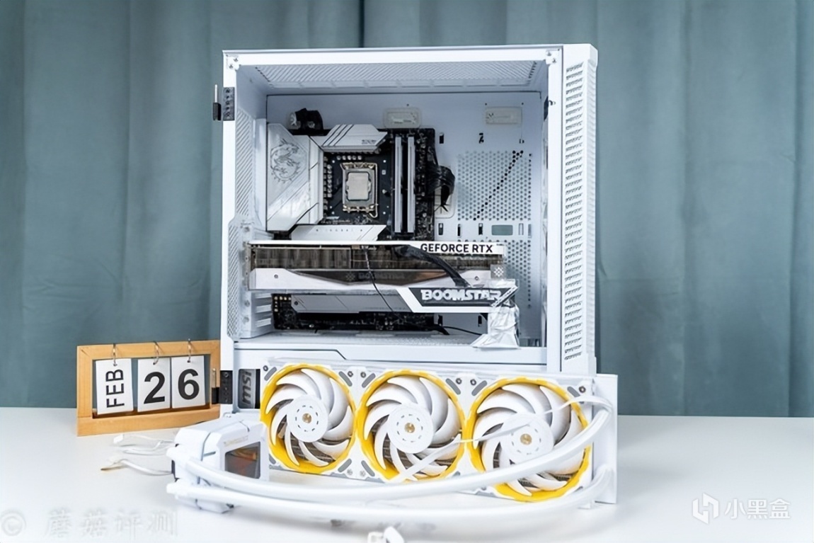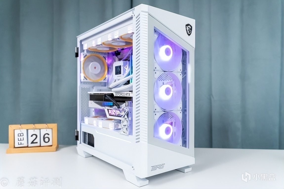 ▼机箱是微星的刀锋100R,这款机箱的前部和侧面标配有大面积的玻璃侧透,可以很好的展示机箱内部的硬件。