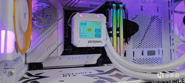 ▼水冷头顶部的这个2.4英寸的液晶屏幕看着效果非常不错,显示很细腻、顺滑,灯效部分还支持使用软件更换或定制。
