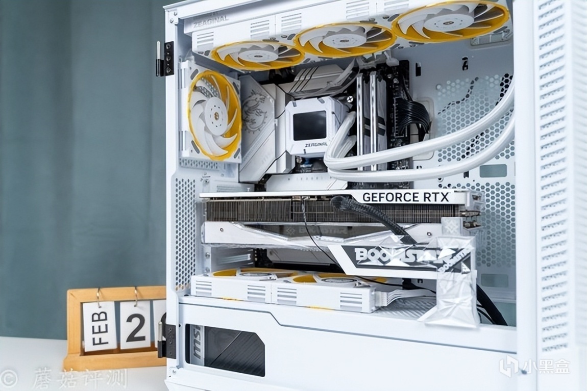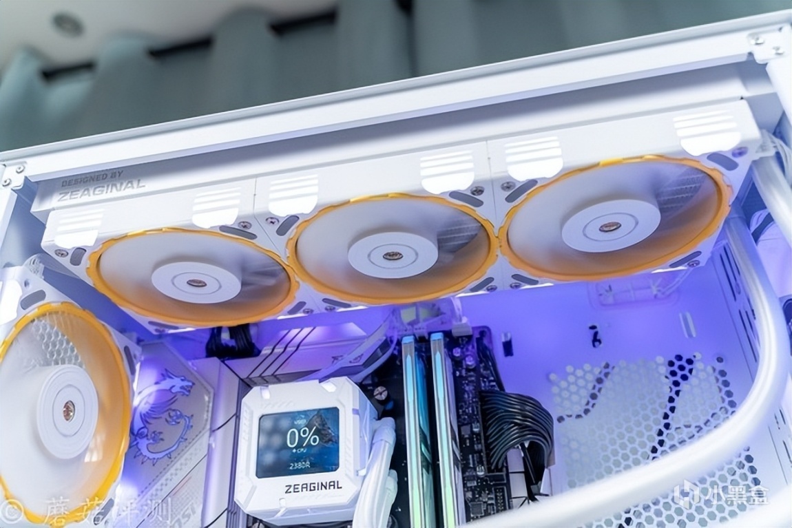 ▼1把机箱风扇放在机箱尾部,用于出风的2把机箱风扇放在电源仓的上部,专门给显卡部分散热。