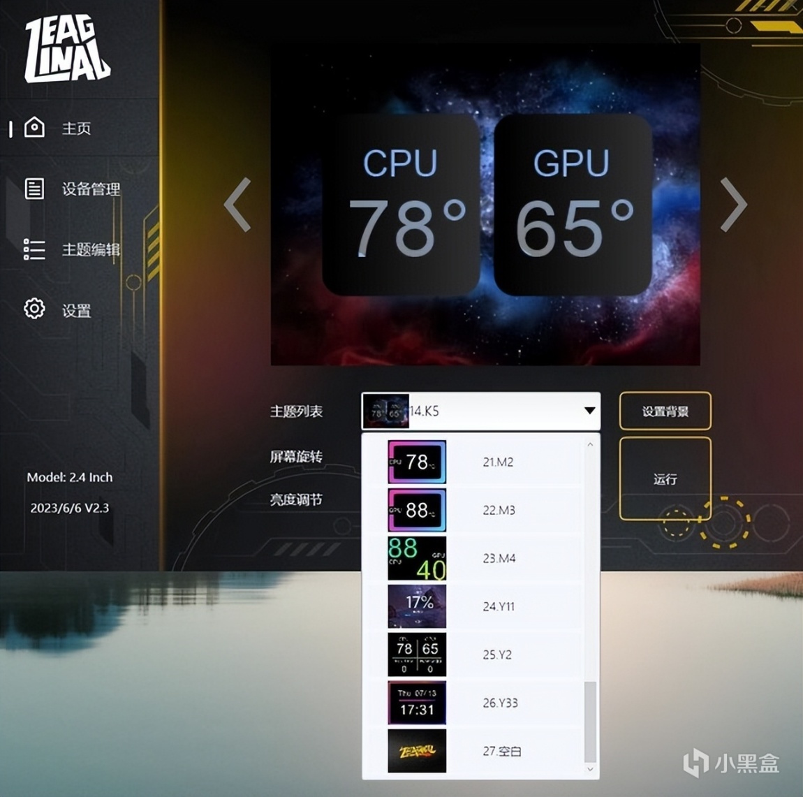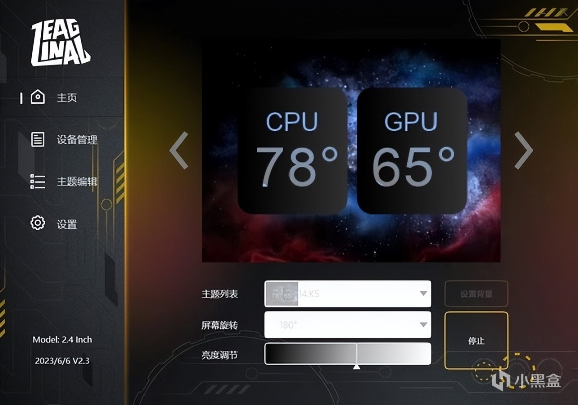 ▼盈通宙斯XT这款水冷的水冷头屏幕可以使用单独的软件来控制,软件界面很简单,左侧是一些菜单界面,右侧是具体的设置部分。
