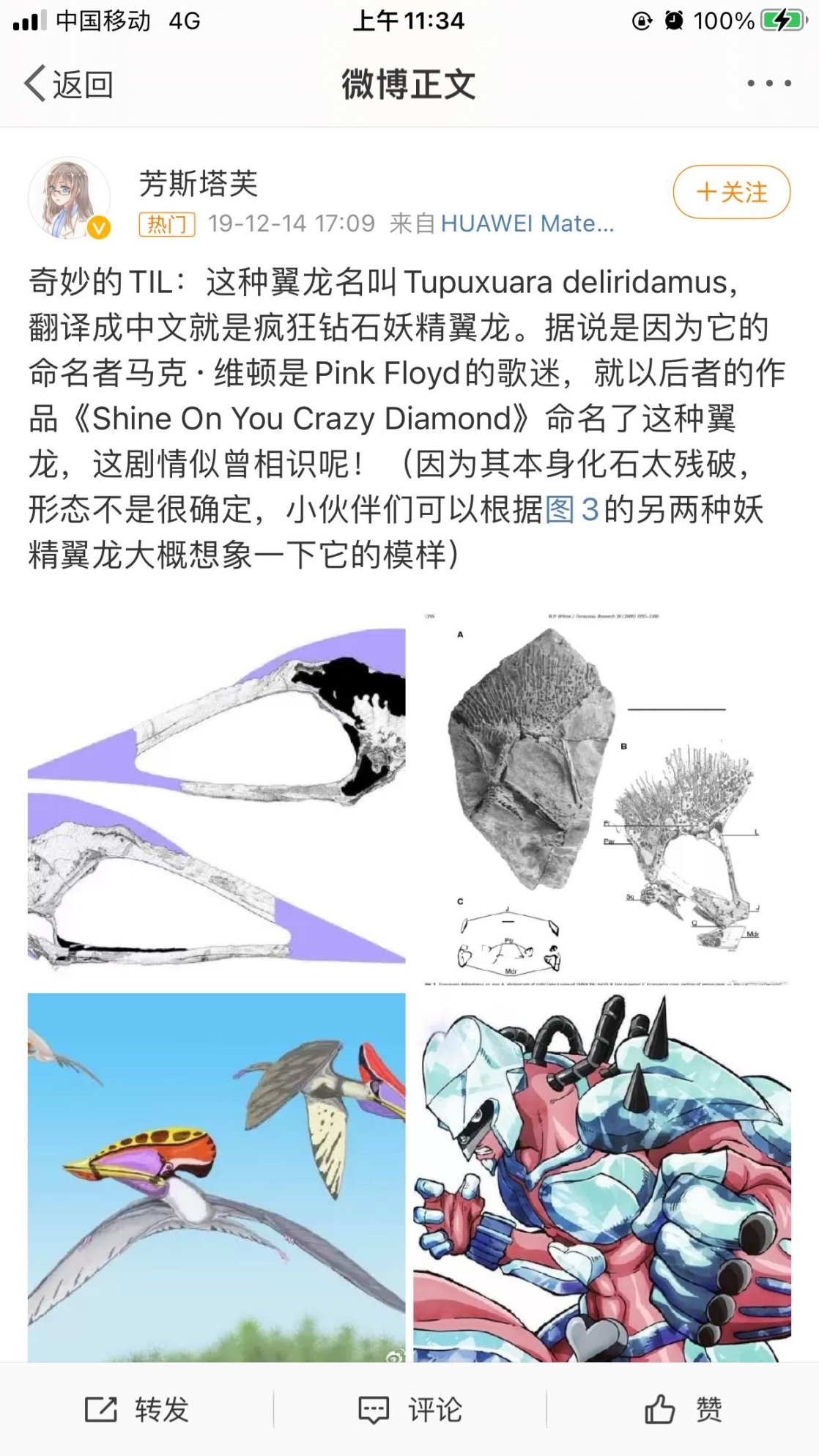 6,疯狂钻石妖精翼龙Tupuxuara deliridamus,翼龙家族名字一直都很炫酷,但这位就算在翼龙里也是出类拔萃的。名字由来在图片上。