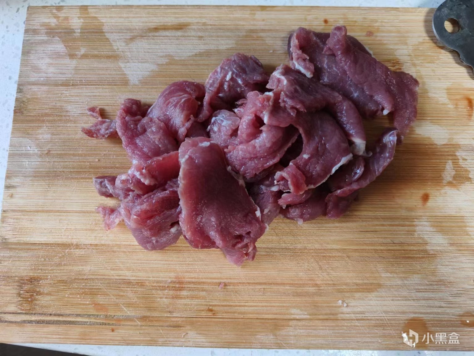 首先把肉塊切成薄薄的厚片放入碗中,依次倒入料酒,胡椒,生抽,雞精,食鹽,用手順時針攪拌上勁,完成後倒入一點清水繼續抓拌上勁,攪拌兩分鐘後倒入玉米澱粉水,鎖住水分,最放倒入一點食用油防止粘連,攪拌攪拌放進冰箱靜置一集奧特曼的時間