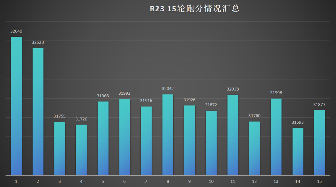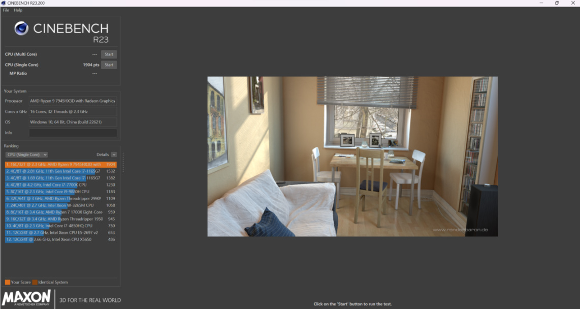 而在R23的CPU性能測試中,最大線程分數爲1904: