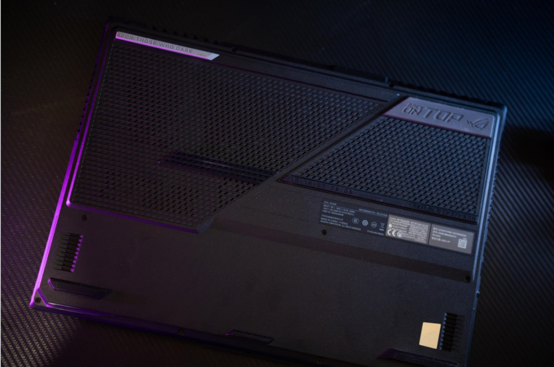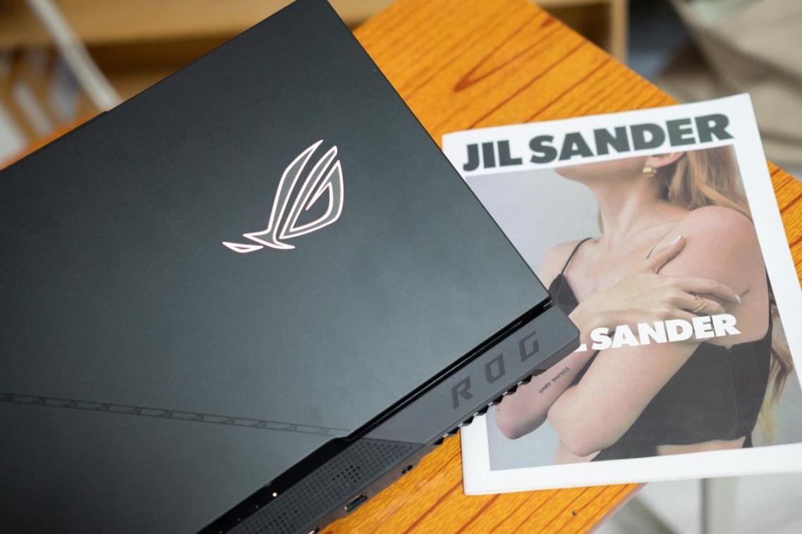 右下角同樣是標誌性的帶有ROG字樣的銘牌,只不過顏色換成了和機身一體的偏灰色: