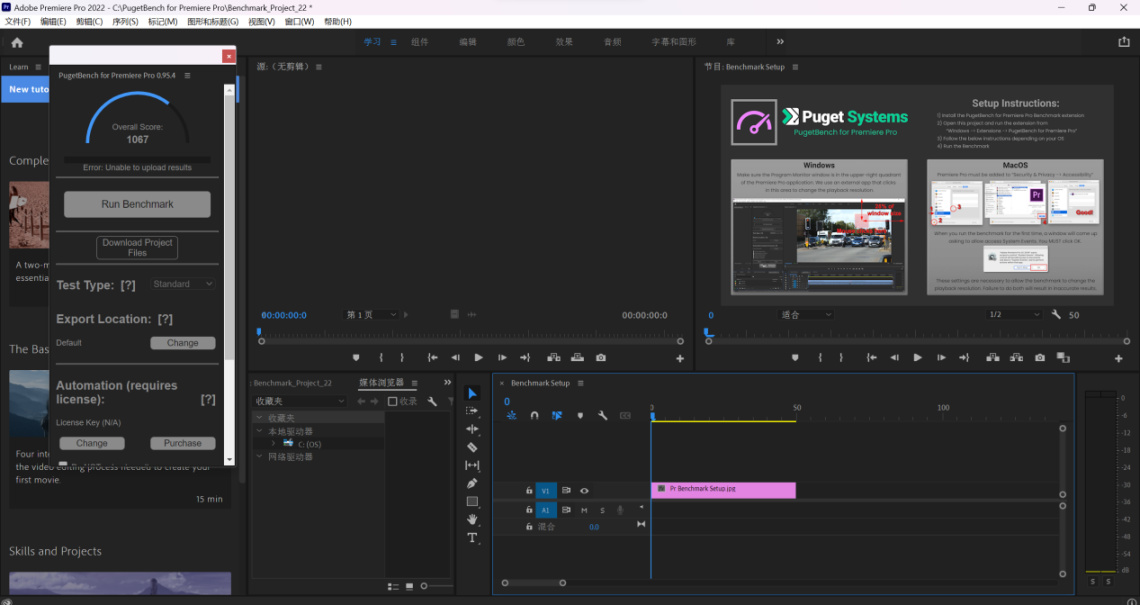 而在PR的pugetbench基準測試中,最終得分爲1067,同樣處於比較高水平,日常剪輯和平面設計問題不大: