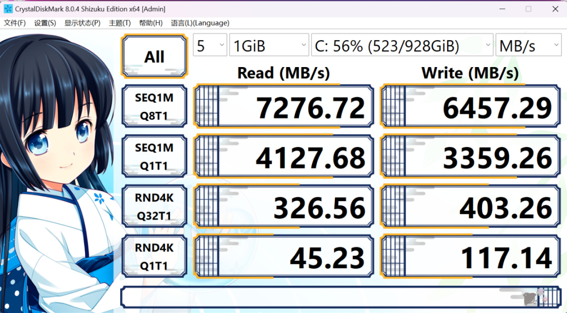 硬盤是一塊來自海力士的PC801,PCIE4.0的規格,讀寫速度相當炸裂,日常使用及遊戲娛樂這塊硬盤綽綽有餘: