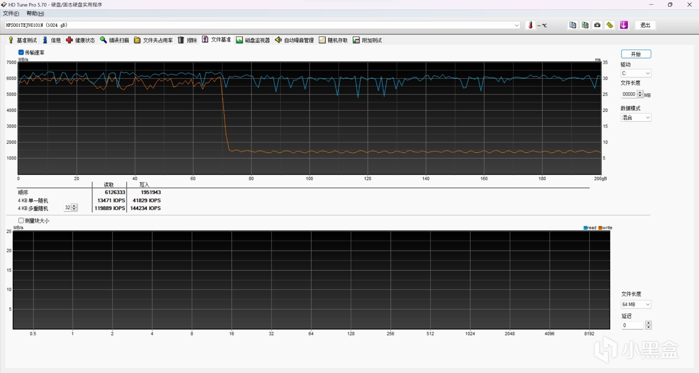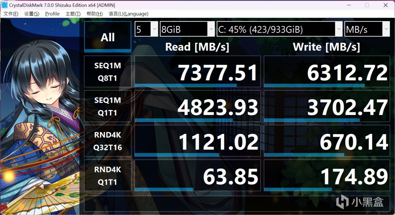 CDM跑400G的盘,7377的顺序读取,6312顺序写入